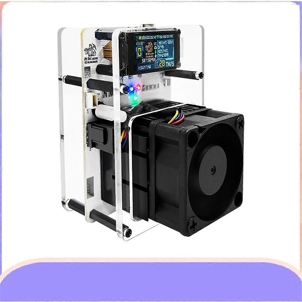 Standalone: You can mine directly to the pools over WiFi. No External computer is needed. Embedded: low cost, low maintenance, high availability, high reliability, low power about 20W.Same power consumption with the NMAxe, but more energy-efficient. ASIC: based on the very, very efficient BM1370 from Bitmain. Perfect for solo miners to hit a Bitcoin block, the NMAxe-Gamma is your golden ticket to potentially earning the 3.125 Bitcoin block reward. NMAxe-Gamma with BM1370 ASIC, Wi-Fi, and Bluetooth solo lottery Miner. Perfect for solo miners to hit a Bitcoin block, the NMAxe-Gamma is your golden ticket to potentially earning the 3.125 Bitcoin block reward. The NMAxe-Gamma increased the hashrate to 1.2TH/s, 2.4 times of NMAxe's 500GH/s. More high-efficiency, rewarding experience makes it the ultimate lottery miner on the market. Integrated Feature:WiFi 802.11b/g, BLE Device management:Web service OS/NMController Master Chip ESP32-S3FN8, Xtensa32 dual core processor ASIC:BM1370 HashRate:1.2th/s Wi-Fi:802.11 b/g, up to 150Mbps Power supply range:12V /3A Display:1.14 inch TFT-LCD display 135x240, 262k colors Supply mode:DC adapter and USB PD charger are supported Memory:384KB ROM; 512KB ; 16MB SPI Flash Power Interface:Type-C USB/DC2.0 Operating temperature:-20-70 The product appearance and printed words depending on the batch, but this does not affect use Voltage: AC100-240V Plug Type:EU Plug,it applies to Indonesia, Germany, France, Spain, Italy and so on Color: As shown Material: plastic Package Contents: 1 x Solo Miner 1 x adapter Only the above package content, other products are not included. Note: Light reflection and different displays may cause the color of the item in the picture a little different from the real thing. The measurement allowed error is +/- 1-3cm.