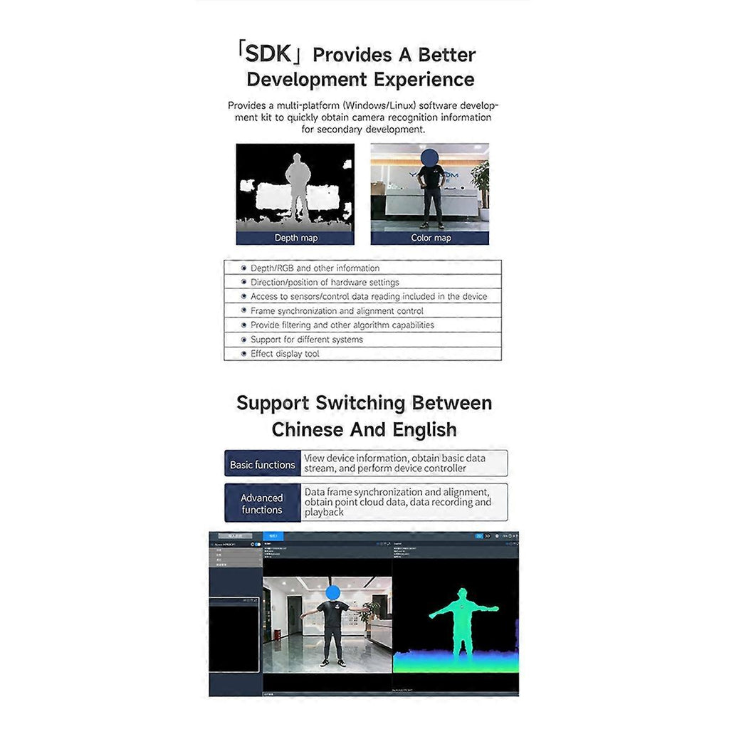 Wide field of view: 1. 73.8 FOV, with a larger coverage range, is suitable for target recognition and tracking in complex environments. 2. 4M effective depth measurement range, long-distance scenes still maintain accurate measurement. 3. 0.2M smaller blind area design, ensures seamless data collection when working at close range to meet the needs of precision operations. Highly integrated and easy to use: 1. Size is 89.8mm x 25mm x 19mm, easy to install. It can be mounted on the robot end effector, drone or mobile device. 2. Supports mainstream development platforms (such as ROS, OpenCV) and operating systems (such as , Linux), which is convenient for developers to quickly integrate and secondary development. 3. SDK and development documents be provided, can make project deployment more efficient. Colour:As Shown Material:Aluminum Alloy style:B Without Bracket Due to different product batches, the appearance , which does not affect the use Package Contents: 1 * 3D Depth Camera Sensor Module Only the above package content, other products are not included. Note: Light reflection and different displays may cause the color of the item in the picture a little different from the real thing. The measurement allowed error is +/- 1-3cm.