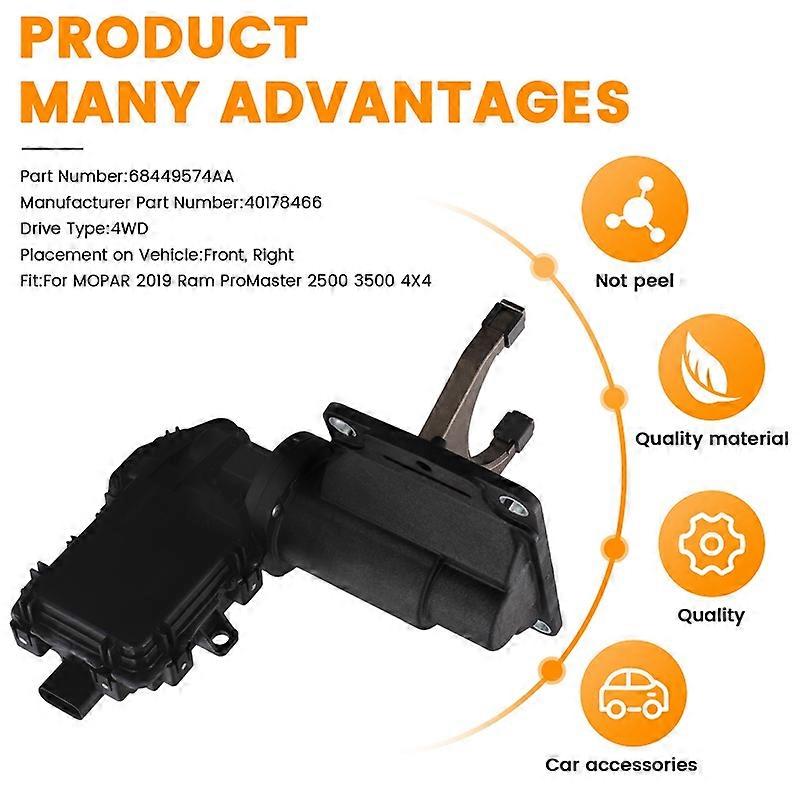 Name:Front Axle Actuator Fork Assembly Part Number:68449574AA Manufacturer Part Number:40178466 Drive Type:4WD Placement on Vehicle:Front, Right Fit:For 2019 Ram 2500 3500 Colour:Black Material:Plastic + Metal Package Contents: 1 x Front Axle Actuator Fork Only the above package content, other products are not included. Note: Light reflection and different displays may cause the color of the item in the picture a little different from the real thing. The measurement allowed error is +/- 1-3cm.
