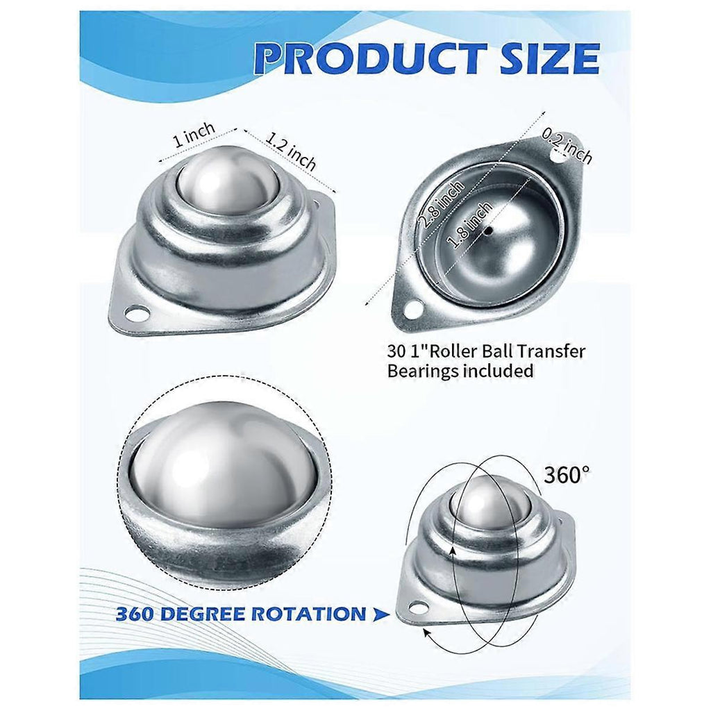 60Pcs Roller Ball Transfer Bearing, 1 Inch Carbon Steel Ball Casters, Mounted Ball Transfer Unit Un