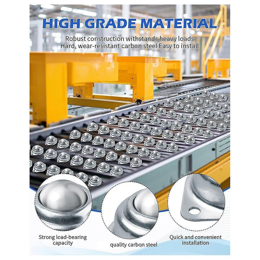 60 Pcs Roller Ball Set - The roller bearing providing a reliable stock that meets most industrial and commercial needs. This ample supply ensures users 't face a shortage, offering continuous and uninterrupted usage for various applications. 360 Degree Rotation for Efficient Operation - Featuring a 360-degree rotation capability, these 1-inch ball casters facilitate smooth and right directional movement. This enhances efficiency, especially in transferring goods in various directions, The seamless rotation reduces effort and increases efficiency in your operations. High Grade Material for Durability - Made from hard, wear-resistant carbon steel, these roller boast a bright, burr-free that resists rust and operates noiselessly. Ball bearing robust construction withstands high stress and heavy loads, significantly extending the lifespan and reliability of the bearings. Broad Application Spectrum - These conveyor rollers are not just limited to industrial use; they're easily installable on light furniture and can be extensively used in conveyor line installations, processing systems, wooden boxes, transmission furniture, workbenches, , and transmission systems. Their wide application range makes them a versatile addition to numerous environments. Universal Size - The size of the roller wheels is about 1 inch, roller ball transfer bearings boast a universal size, making them compatible with a wide range of applications. Their standardized dimensions they can be easily integrated into different setups, from ball casters in machinery to low-profile casters in furniture, providing a versatile solution for your movement needs. Colour: As Shown Material: Carbon Steel Package Contents: 1set*conveyor rollers Only the above package content, other products are not included. Note: Light reflection and different displays may cause the color of the item in the picture a little different from the real thing. The measurement allowed error is +/- 1-3cm.