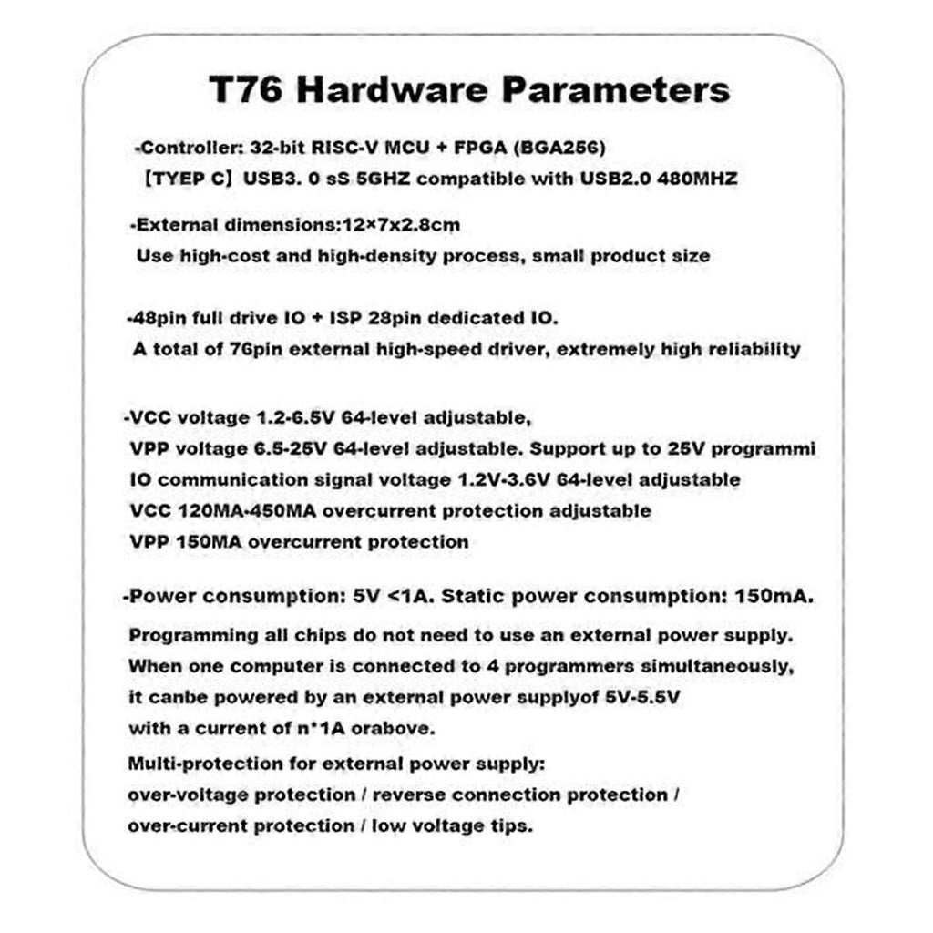 Stability,Faster,Reliability,Easy to use High-performance, high-tech products Note:Due to different factory batches, slight differences in appearance colors not affect the use. Colour:Black & Brown Material:Plastic Package Contents: 1 * T76 Programmer Set Only the above package content, other products are not included. Note: Light reflection and different displays may cause the color of the item in the picture a little different from the real thing. The measurement allowed error is +/- 1-3cm.