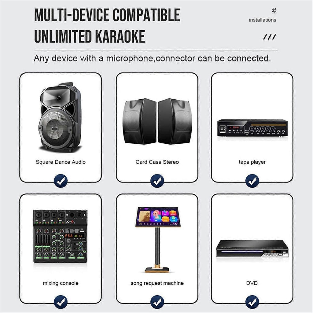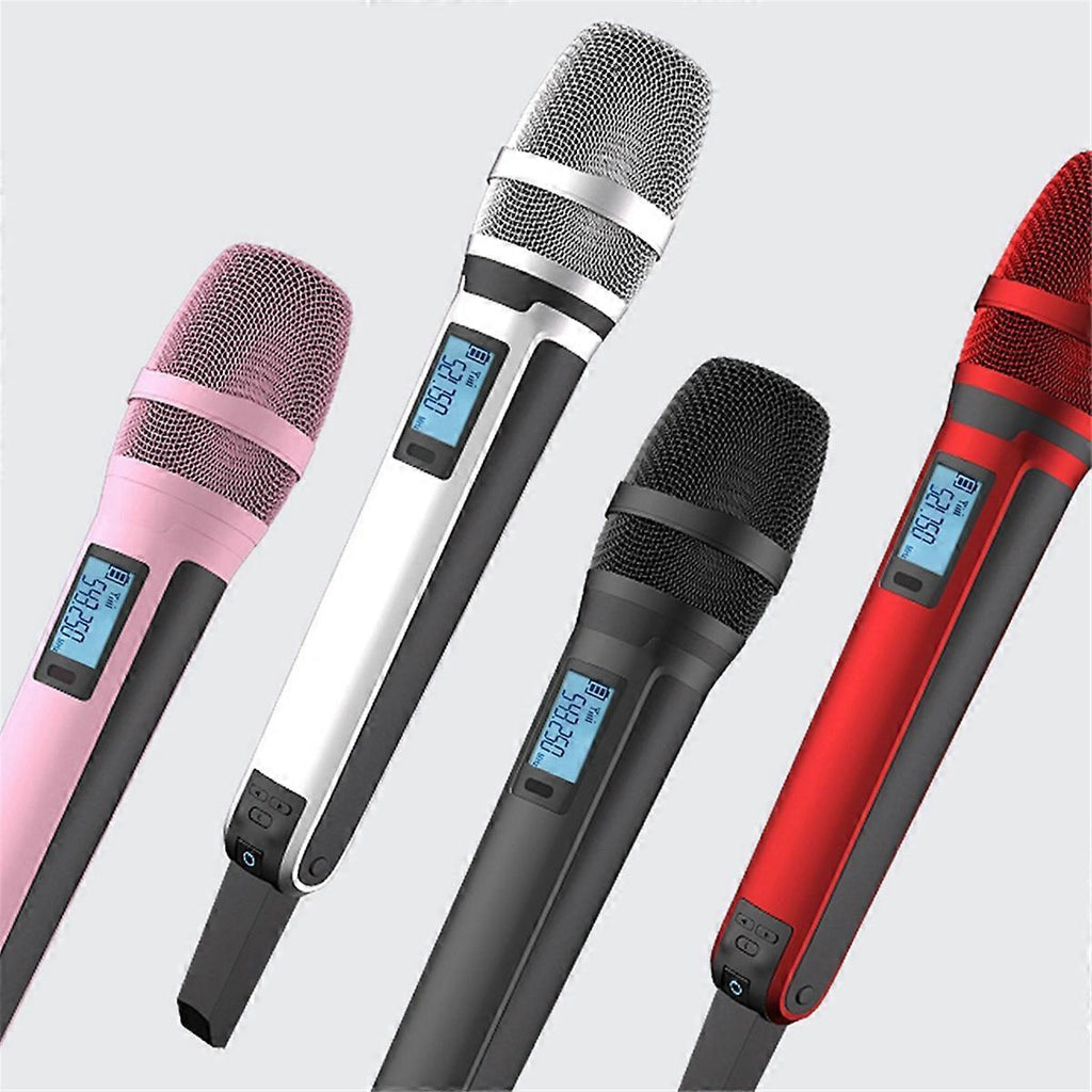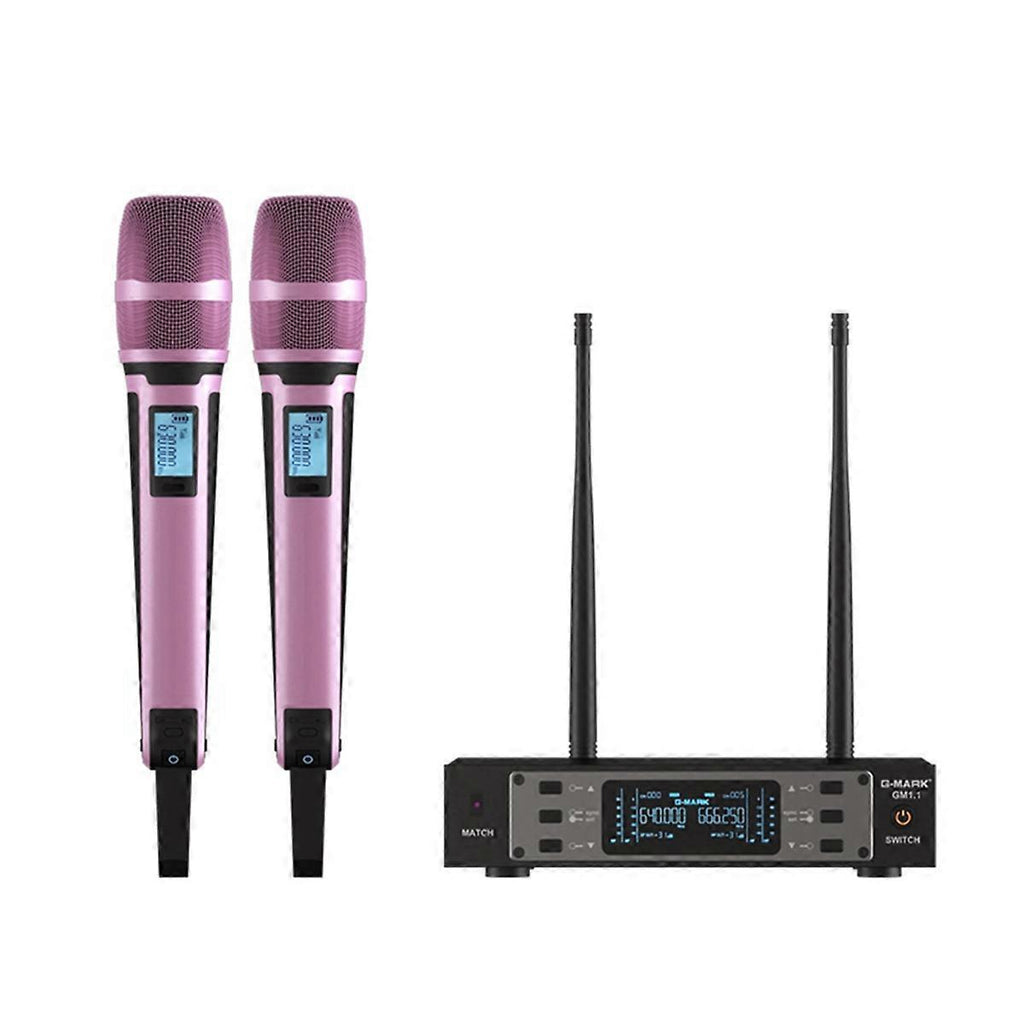 Versatile Frequency Adjustment: Tailor your audio delivery with the adjustable frequency feature of the GM1. 1, making it perfect for speeches, concerts, and other events where sound clarity is . This flexibility allows for optimal performance in any setting. Multi-Scenario Compatibility: Ideal for professionals across fields, the GM1. 1 excels in diverse settings from outdoor events to indoor conferences. Its ability to deliver clear and stable sound up to 100 meters away ensures your voice is heard in every corner of the venue. Device Compatibility: Connect seamlessly with devices, enhancing its utility for both professional engagements and personal use. This compatibility ensures the GM1. 1 is a versatile tool for anyone needing reliable audio performance. Advanced Anti-Interference: Equipped with UHF technology, the GM1. 1 microphone minimizes interference, maintaining audio clarity and stability even in locations with multiple competing signals. Specifications: Wireless microphone working distance: 20-50 meters RF bandwidth: 60MHz Frequency points: 30 Signal-to-noise ratio: 96dB Receive sensitivity: -95dBm microphone type: Dynamic microphone Pickup method: cardioid pointing Frequency range: 520-580MHZ RF bandwidth: 60MHz Transmit power: 10mW Frequency Response:50Hz-18KHz Dynamic range: 96dB Plug Type:EU Plug,it applies to Indonesia, Germany, France, Spain, Italy and so on voltage:AC220V Colour:pink Material:Metal Package Contents: 1 * Wireless Receiver 2 * Wireless Handheld Microphone 1 * Power Charge Cable 1 * Audio Cable Only the above package content, other products are not included. Note: Light reflection and different displays may cause the color of the item in the picture a little different from the real thing. The measurement allowed error is +/- 1-3cm.