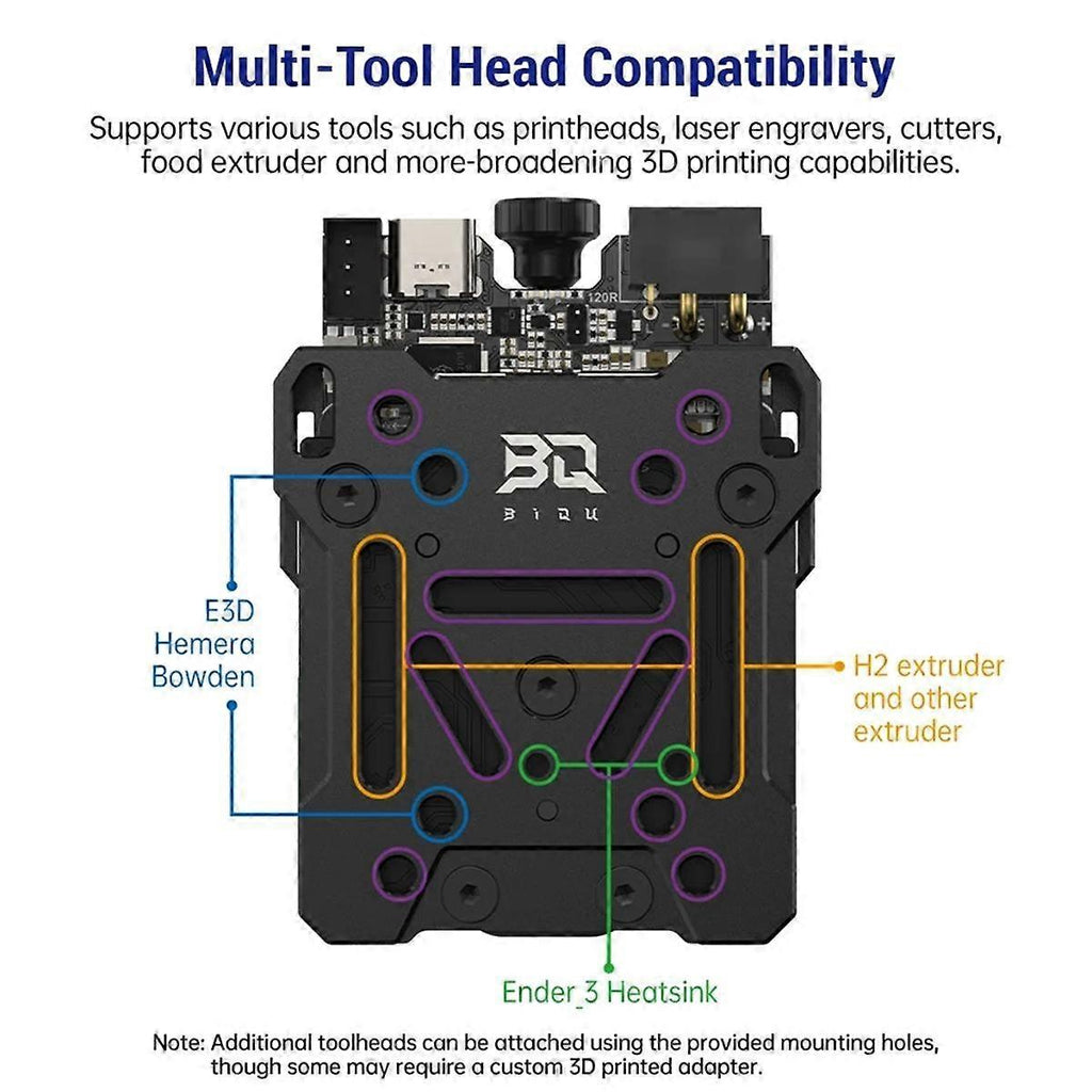 CAN bus: Communication lncludes a CAN bus cable, which is reliable and durable.LlS2DW: Onboard Accelerometer MAX31865: Supports SeIectable PT100/PT1000Expansion lnterface: IC, RGB. Probe, 2 x 2-pin Fans, 4-pin Fan (Fan VoItage SeIectabIe), Endstop, CAN, USB, Onboard TMC2209 Rapid Tool Head Swapping: Quickly change out tool heads on your printer with ease and without the need for cooling down or disassembly. Features a CNC-crafted body, ensuring a sturdy, vibration-resistant performance for detailed work-providing precise and reliable printing results. Multi-Tool Head Compatibility: Supports various tools such as printheads, laser engravers, cutters, food extruder and more-broadening 3D printing capabilities. Feature:Quick Tool Head Changes CAN BUS Simple Wiring, Stable Connectivity More Compact & Multi-Tool HeadCompatible Hermit Crab CAN V2.0 Firmware Support:Klipper One Fixed Plate+Three Tool Plates: With three tool plates, users can pre-install different extruders for quick and efficient switching that allows users to meet various printing needs Wide Printer CompatibiIity:Adapts to both MGN12H and MGN9H linear rails, as well as 2020 European standard V-slot rails. Spec: Hermit Crab CAN V2.0 Firmware Support:Klipper Onboard Accelerometer:LlS2DW Onboard MAX31865:YES CAN lnterface:XT30 MCU:RP2040 Dual ARM -M0+@133MHz lnput Voltage:DC12V-DC24V 9A Logic Voltage:DC 3.3V Heating lnterface:Heater (HE0),maximum output current:6A Fan lnterface:2 x 2-Pin CNC Fans (FAN1, FAN2),lx 4-Pin Fan (FAN0),selectable voltage Maximum Fan lnterface:0.75A, 0.9A Expansion lnterface:IC,Probe,RGB,USB,CAN,STOP Motor Driver:TMC2209 Driver Operating Mode:UART Stepper Motor Interface:E0 Temperature Sensor Interface:1xNTC100K/PT100/PT1000 Selectable USB Communication:USB Type-C DCDC 5V Maximum Output Current:1A tip:CAN version,with can Material: Metal colour: Black Package Contents: 1 x Fixed Plate 3 x Tool Plate 1 set accessories (accessories color random, Cannot be chosen the specific color.) Only the above package content, other products are not included. Note: Light reflection and different displays may cause the color of the item in the picture a little different from the real thing. The measurement allowed error is +/- 1-3cm.
