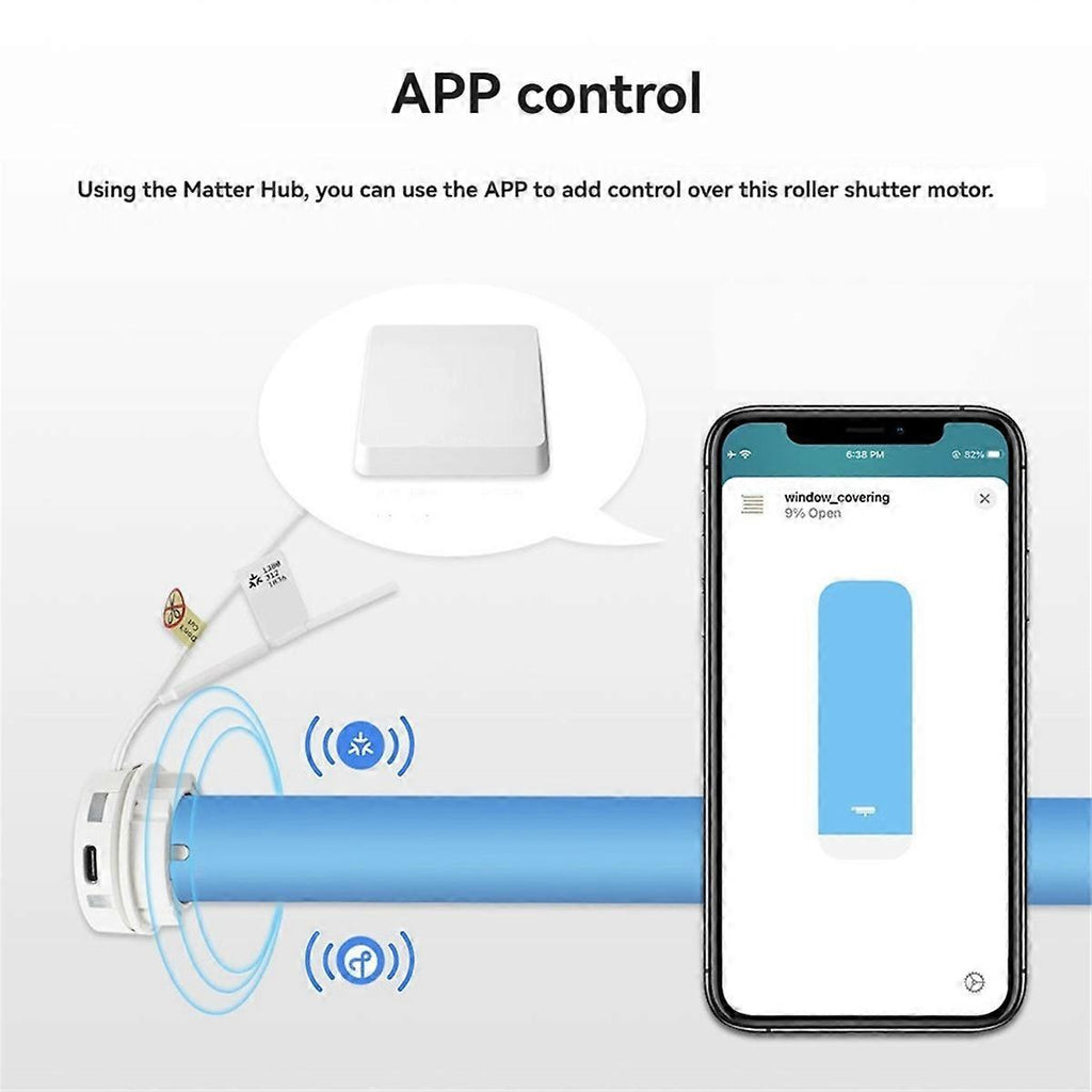 Thread border hub required to work with matter-enable system. Bulit in Thread module.Thread hub is required. The motor is suitable for blind tubes with a diameter of 37-38mm. Insert the motor into the tube, and turn the traditional blind into a smart control. It allows you to set work schedule, group control, voice control and so on. Built in battery: Built-in 2600mAh rechargeable lithium battery, charge through USB charging port. With up/ middle/ dowm limit for set, meet your mind easily.(Note: remote control is required to set the limit !) Widely used in living rooms, bedrooms, and office settings, bringing convenience to people. Note: The Alexa ecosystem is still at testing , and it has not yet been released yet, so it needs to wait. Home and Smartthing can work now (Hub required) Remote is required to set the limit !!! Colour:As Shown Material:iron Package Contents: 1 * Smart Roller Shade Blinds Motor Only the above package content, other products are not included. Note: Light reflection and different displays may cause the color of the item in the picture a little different from the real thing. The measurement allowed error is +/- 1-3cm.