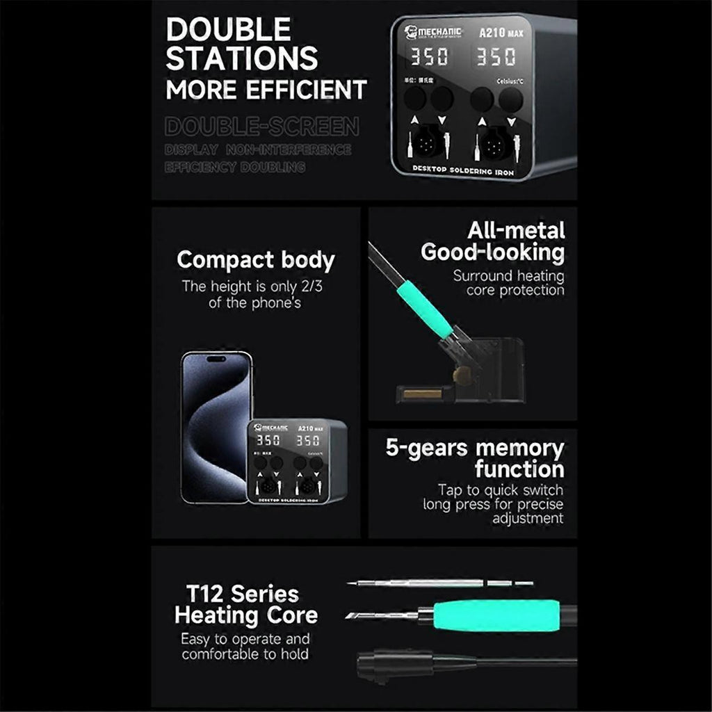 MECHANIC A210 MAX Soldering Station Tips Double Station Welding Station Core Short Circuit Protecti