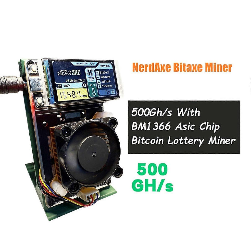 NerdAxe is a fork from bitaxe Ultra with fullcolor display graphics, a fully open-source Bitcoin ASIC miner. NerdAxe is indented to be an expansion board for these who have a NerdMiner and would like to have more powerful mining features without losing the NerdMiner essence. That's why NerdAxe is currently controlled by the common board used on Nerdminer project,This design ensures an efficient and powerful mining capabilities, achieving 500 /s with an energy efficiency of 20 J/TH Although the current mining capabilities of Nerdaxe position it as a solo miner compatible with any solo mining pool, it's important to manage expectations regarding its performance. Mining a block independently with Nerdaxe is a challenging and unlikely. Due to different batches, there may be differences in product appearance, color, and printed text, and the fan in the product may be labeled, which not affect the use. Plug Type:UK plug,it applies to Malaysia, the United Kingdom and so on. Voltage:AC230V Colour:Green Material:Plastic+PCB Package Contents: 1 * NerdAxe Miner 1 * Power adapter Only the above package content, other products are not included. Note: Light reflection and different displays may cause the color of the item in the picture a little different from the real thing. The measurement allowed error is +/- 1-3cm.