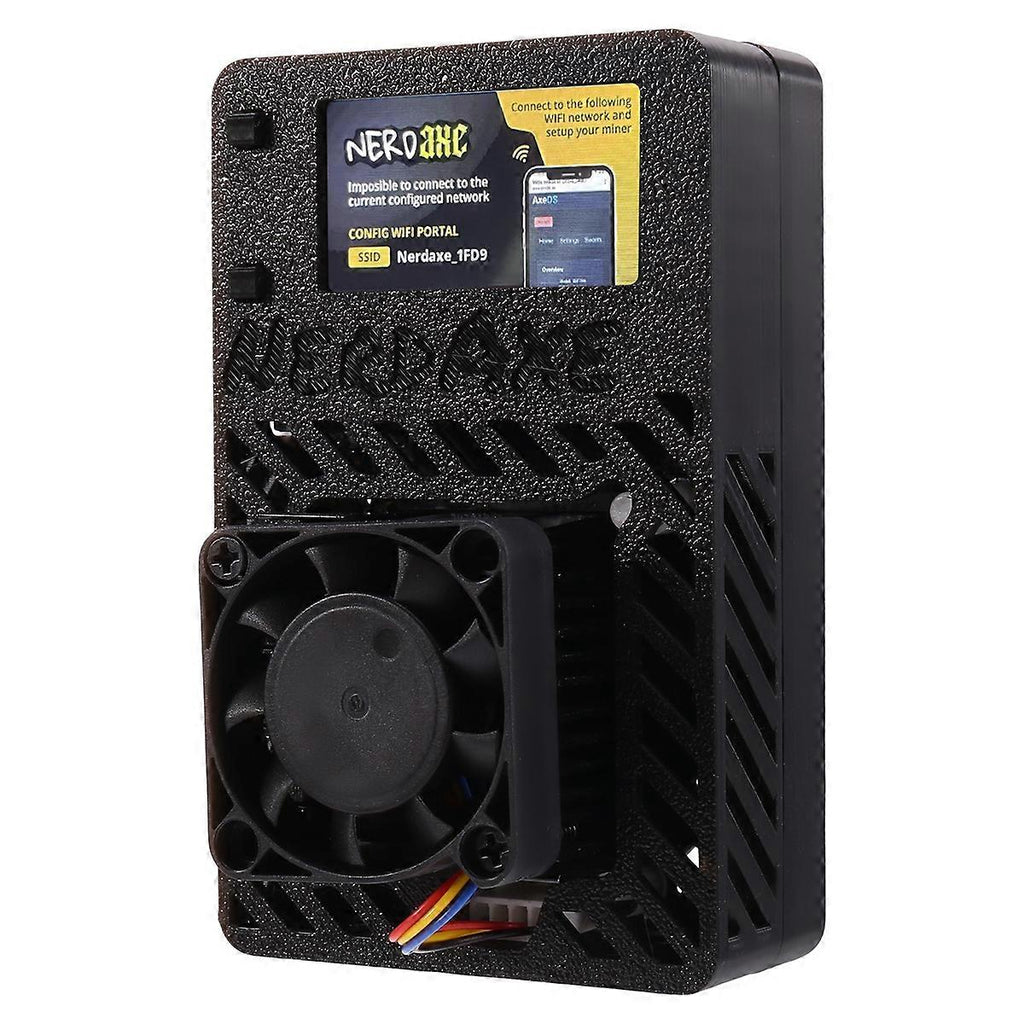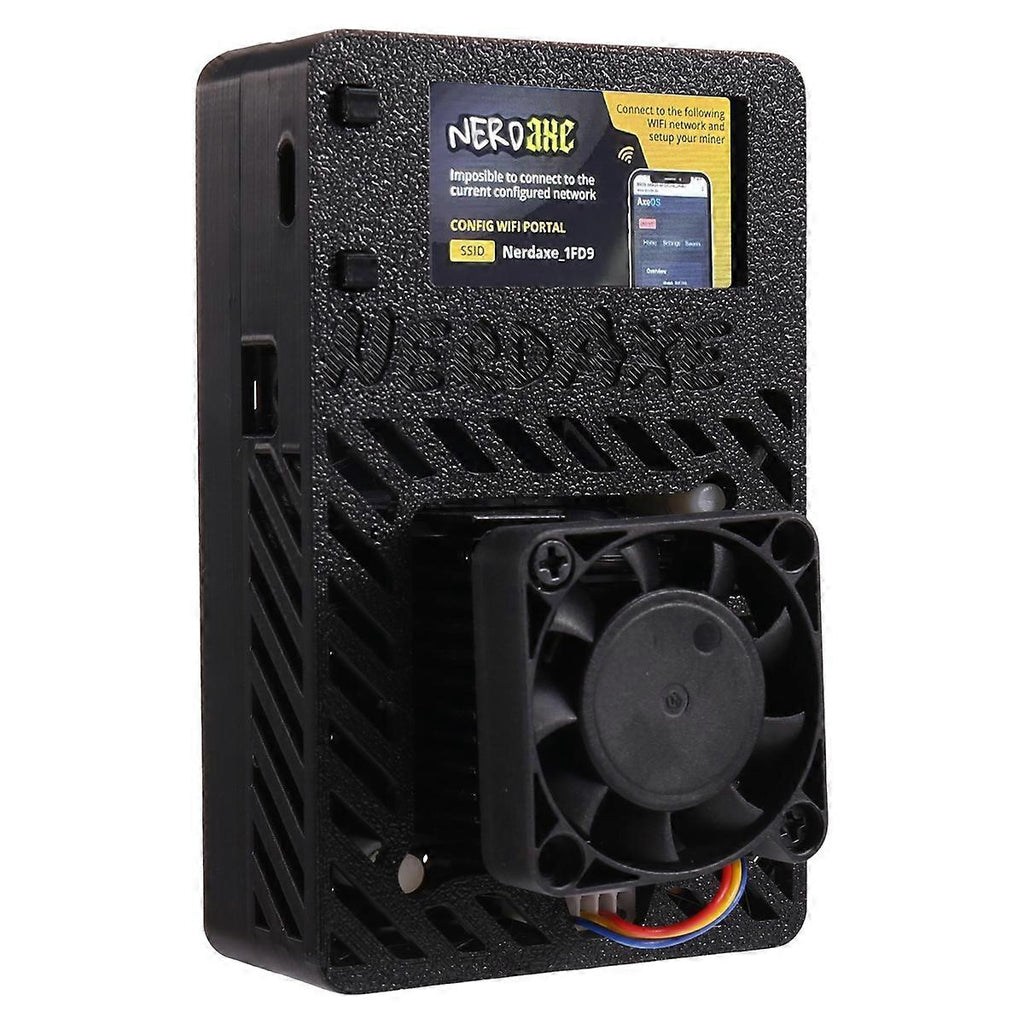 NerdAxe is a fork from bitaxe Ultra with fullcolor display graphics, a fully open-source Bitcoin ASIC miner. NerdAxe is indented to be an expansion board for these who have a NerdMiner and would like to have more powerful mining features without losing the NerdMiner essence. That's why NerdAxe is currently controlled by the common board used on Nerdminer project,This design ensures an efficient and powerful mining capabilities, achieving 500 /s with an energy efficiency of 20 J/TH. Although the current mining capabilities of Nerdaxe position it as a solo miner compatible with any solo mining pool, it's important to manage expectations regarding its performance. Mining a block independently with Nerdaxe is a challenging and unlikely. Note:Type C cable is not for powering the machine, but for updating or burning firmware. Due to different batches, there may be differences in product appearance, color, and printed text, and the fan in the product may be labeled, which not affect the use. Plug Type:UK plug,it applies to Malaysia, the United Kingdom and so on. Voltage:AC230V Colour:Black Material:Plastic Package Contents: 1 * NerdAxe Miner 1 * Power adapter 1 * Type C cable Only the above package content, other products are not included. Note: Light reflection and different displays may cause the color of the item in the picture a little different from the real thing. The measurement allowed error is +/- 1-3cm.