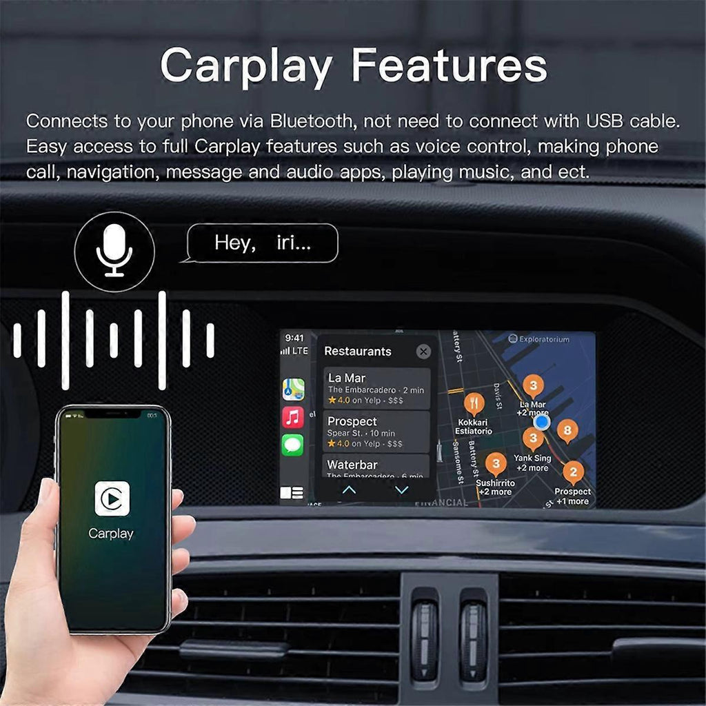 Support Wired/Wireless CarPlay & Android Auto. Support Screen mirroring function (iOS, Android). Support USB multimedia playback(supports lossless audio, 720P video and picture playback). Support for original-car's rear-viewing camera, after-sale rear-viewing camera(CVBS/AHD),front-viewing camera (can be set up) or DVR. Support for-original Bluetooth call function. [IMPORTANT NOTE] Be sure to confirm whether your glove box has a module slot before purchasing. If your glove box doesn' have a module slot, it ' work even if your model is included in the adapter table!! This carplay wireless adapter is compatible for 2011-2016 for A//E/CLA/GLA//ML/SLD NTG4.5 System with slot. If your audio has no sound, please do the Bluetooth connection audio setting. Note:Due to different production batches, there are differences in the printing of appearance labels, which not affect the use. Colour:Black Material:ABS Package Contents: 1 x Wireless Carplay Android Auto Decoder 1 x Accessories Kit Only the above package content, other products are not included. Note: Light reflection and different displays may cause the color of the item in the picture a little different from the real thing. The measurement allowed error is +/- 1-3cm.
