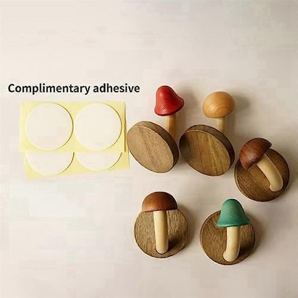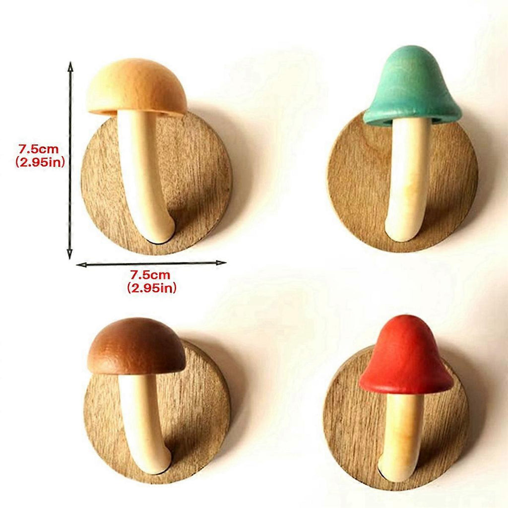 2X Fun Wooden Mushroom Coat Hook, Non-Perforated Solid Wood Hook, Kitchen Bathroom Cloakroom Door Ho