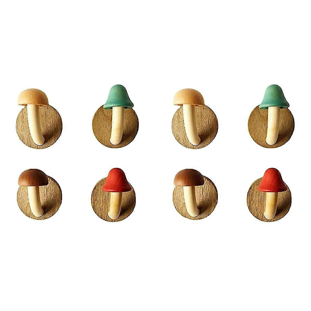 MUSHROOM DESIGN: The fun wooden mushroom coat hook bring of nature to your home decor. SOLID WOOD MATERIAL: Our non-perforated hooks are made of high-quality solid wood, which is and can withstand heavy items. VERSATILE USE: Perfect for use in the kitchen, bathroom, cloakroom, or on doors for hanging clothes, bags, towels, or other accessories. PACKAGE INCLUDES: This pack of 8 mushroom hooks is perfect for families or housemates, providing enough hooks for everyone to use. EASY INSTALLATION: These hooks can be easily mounted on wall surfaces or doors without the need for drilling holes. Colour:As Shown Material:wooden Size: 7.5 x 7.5cm Package Contents: 8 x Coat hook Only the above package content, other products are not included. Note: Light reflection and different displays may cause the color of the item in the picture a little different from the real thing. The measurement allowed error is +/- 1-3cm.