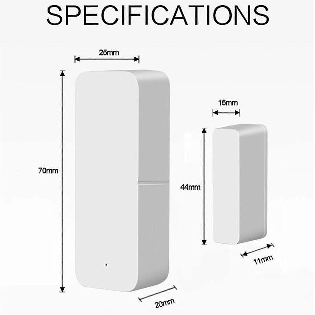 Smart Alerts Notice. Get Instant Push Notification to Your Phone When Door Sensor Detects Activity. Family Members Sharing One Sensor. Share the device with your family with Smart Life APP. Lighting Automation Create smart scene on Smart Life APP,your smart light can be automatically turned on when you open the door Easy to Install Align with the middle line,space less than 10 mm. Low Power Technology With a high-performance, low-power microprocessor, battery life is available for 2 years, avoiding frequent battery replacements. Push message When the status of the door and window sensors changes,the mobile app can receive messages in real time to deal with abnormal situations. Small size,easy to install Adhesive installation,can be flexibly placed in doors, ,drawers,etc,without the appearance and structure of the original furniture. Input voltage: AAA1.5Vx2(not included) Quiescent Current: less than or equal to 8uA Alarm Current: less than or equal to 70-120mA Low power undervoltage: less than or equal to 2.7V WiFi: 2.4GHz IEEE 802.11b/g Magnetic control distance: less than or equal to 10mm Working temperature: -10??-50?? Working humidity: max 95%RH colour: white Material: ABS Size: 70x25x20mm Package Contents: 4 x Smart Window Door Sensor Only the above package content, other products are not included. Note: Light reflection and different displays may cause the color of the item in the picture a little different from the real thing. The measurement allowed error is +/- 1-3cm.