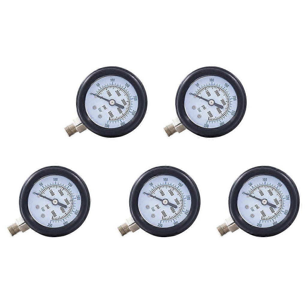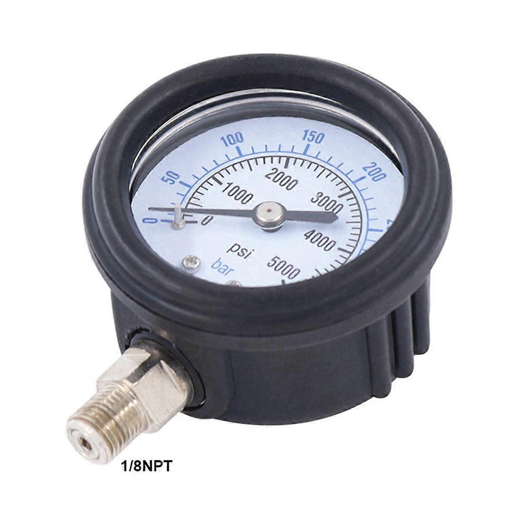 Thread: 1/8NPT Gauge pressure: 350bar Table diameter: 60.4mm Table thickness: 36.9mm Colour:As shown Material:Metal Package Contents: 5 x pressure gauge Only the above package content, other products are not included. Note: Light reflection and different displays may cause the color of the item in the picture a little different from the real thing. The measurement allowed error is +/- 1-3cm.
