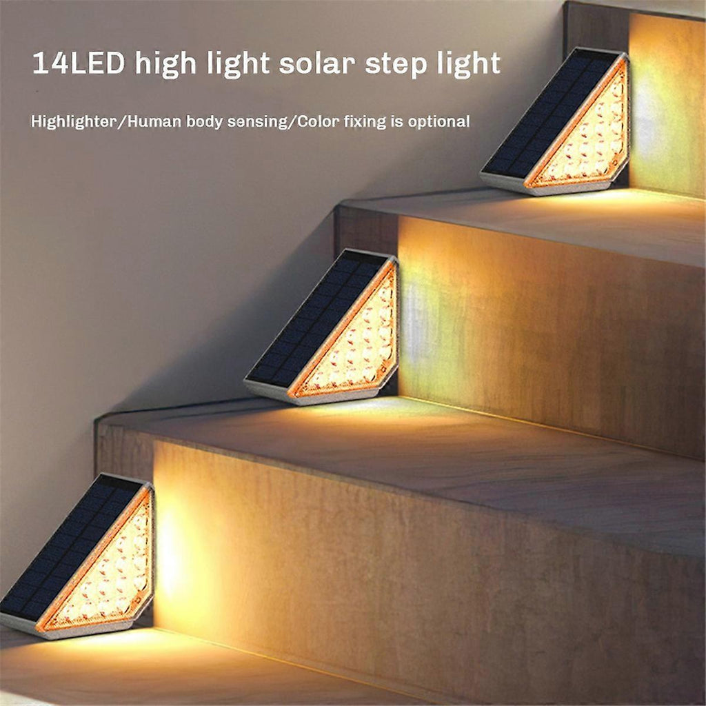 TRIANGLE-SHAPED DESIGN- The triangular design of the solar step lights, placed on both sides of the steps to achieve each step has bright lighting, installed on both sides of the steps, making it easier to walk at night, not hit the steps or lamps. HIGH CONVERSION SOLAR PANEL- The triangular design makes it have a larger solar panel than other solar stair lights, the solar panel conversion rate is up to 21%, when the solar light is for 4-5 hours in the sunlight during the day, it can continue to illuminate for more than 10 hours at night. BRIGHT LED BEADS- Each outdoor solar lights with 14 bright LED beads to provide enough lighting for your steps, stairs, decks, to meet all the needs of walking at night, let you and your family walk at night without fear of the dark. EASY INSTALLATION- No extra wiring required, just use double-sided tape to stick to the solar light and stick to any outdoor place you need! Please turn on the switch before installation, and wipe the to be pasted with a rag before installing the solar lights for outside. WATERPROOF & - IP65 waterproof outdoor solar step lights, with high-quality ABS material design, installed outdoors, not afraid of the sun and rain, just need to keep the solar panel clean, can provide you with ultra-long time lighting at night. Colour:As Shown Material:ABS Package Contents: 6Pack Solar Step Lights for Outside With mounting accessories Kit Only the above package content, other products are not included. Note: Light reflection and different displays may cause the color of the item in the picture a little different from the real thing. The measurement allowed error is +/- 1-3cm.