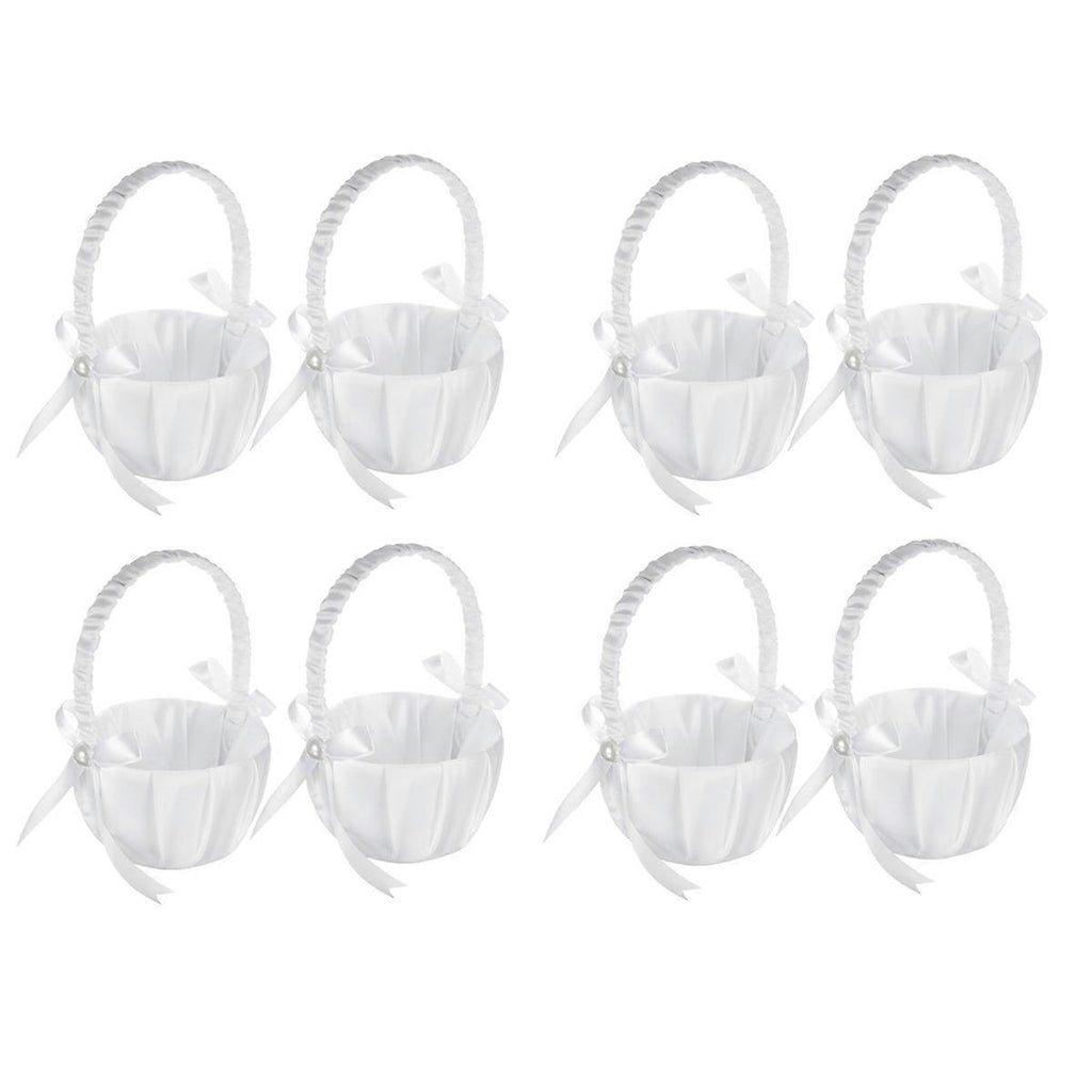 8 Pack Wedding Satin Flower Basket,Romantic Bowknot Party Rose Flower Girl Basket