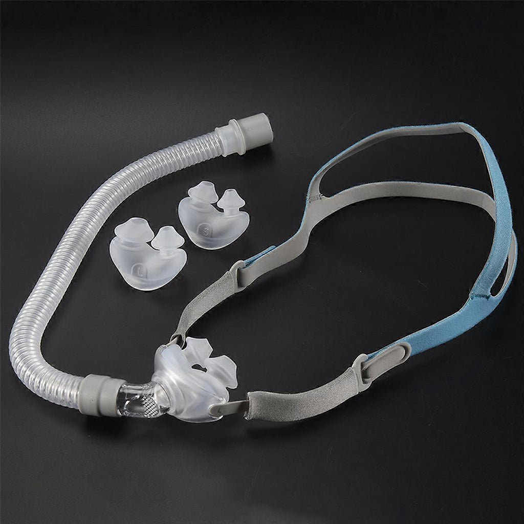 Minimal design, light and comfortable,Upgraded vent design reduces noise during use Multiple alternative standard silicon pads - three sizes (S/M/L). Soft silicone pads are comfortable to wear and easy to replace Ultra-soft, light and flexible bending tube, removable and easy to clean Ultra-light and soft headband, so you can hardly feel its presence, less skin contact therefore giving you a free and comfortable treatment,Ergonomic design Material:Silicone plastic colour:Blue+gray+transparent Package Contents: 3 x (S M L) silicone pad 1 x nasal mask 1 x Headband Only the above package content, other products are not included. Note: Light and different displays may cause the color of the item in the picture a little different from the real thing. The measurement allowed error is +/- 1-3cm.