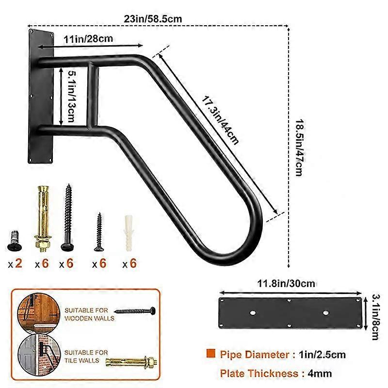 & Sturdy: This handrail for outdoor steps is made of iron, can withstand weights up to 550LBS. You can use it with confidence. It is your reliable assistant both indoors and outdoors. Humanized Design: This stair railing for indoor adopts a U-shaped design based on mechanical principles to easier to use. The frosted effectively increases friction to improve comfort and safety during use. Safe & Reliable: The outdoor grab bar is made of iron material. This material is free of harmful substances, wear-, low temperature , and -. Easy to Install: this Handrails can be easily installed indoors or outdoors where you want to install it. Colour:black Material:iron Package Contents: 1X Handrail for outdoor steps 1X Mounting Accessories kit Only the above package content, other products are not included. Note: Light reflection and different displays may cause the color of the item in the picture a little different from the real thing. The measurement allowed error is +/- 1-3cm.