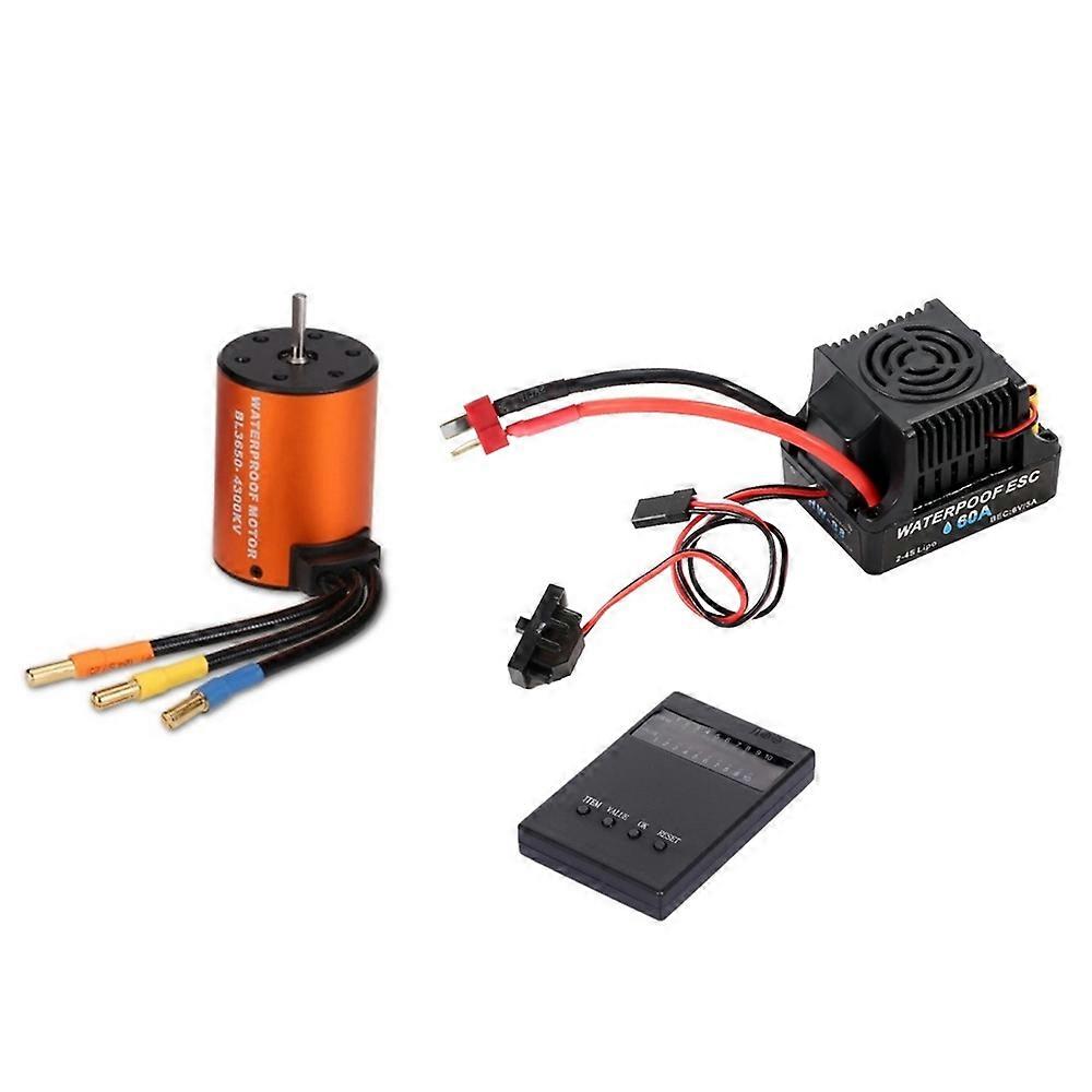 Waterproof 3650 4300KV Brushless Motor with 60A 2-4S Lipo ESC Programming Card Combo Set for 1/10 RC