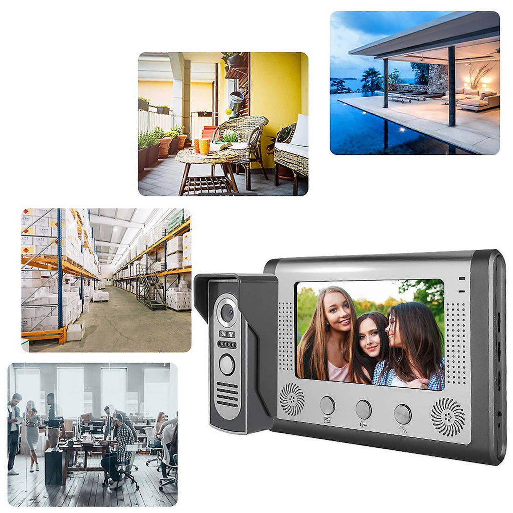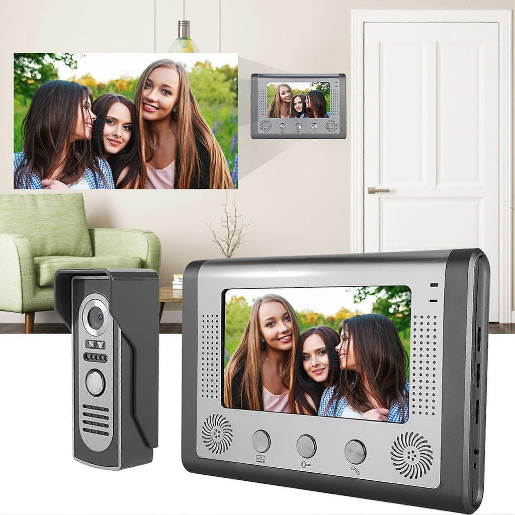 Features 1??7 inches high definition digital TFT LCD screen monitor with ultra-slim design, nice and luxurious. 2??Outdoor call intercom: According to the Didong button on the outdoor computer, you can talk to the people in the room. 3??Indoor call intercom: Press the monitor key to see the outside environment, and then press the intercom key to talk with the outside people. 4??Hands-free intercom function. Electronic control lock function. Outdoor monitoring function. 5??You can talk to visitors smoothly at any time and any place. Specification Features: 7 inches high definition digital TFT LCD screen monitor with ultra-slim design, nice and luxurious. Outdoor call intercom: According to the Didong button on the outdoor computer, you can talk to the people in the room. Indoor call intercom: Press the monitor key to see the outside environment, and then press the intercom key to talk with the outside people. Hands-free intercom function. Electronic control lock function. Outdoor monitoring function. You can talk to visitors smoothly at any time and any place. Super rainproof, IP55 waterproof grade, with night vision infrared function, wall-mounted installation is simple and convenient. Specification: Material: ABS Model: 801m11 Color: Shown as Picture Current: less than 800 mA Telephone Delay Time: 120S??10% Surveillance Delay Time: 60S??10% Camera Sensor: OV1030 420 TV-Lines Lens: 3.6MM, 92degrees Waterproof: IP55 Indoor Monitor Size: 235* 165 * 32mm/5.3 * 6.5 * 1.3in Outdoor Unit Size: 120 * 50 * 43mm/4.7 * 2.0 * 1.7in Package Weight: Approx. 1179g/41.6oz Package list: 1 * Indoor Monitor 1 * Outdoor Unit 1 * 5m 4 Core Power Cable 1 * AC Power Supply 1 * 2 Core Terminal Wire 1 * Screws Pack 1 * Manual 2 * 4 Core Terminal