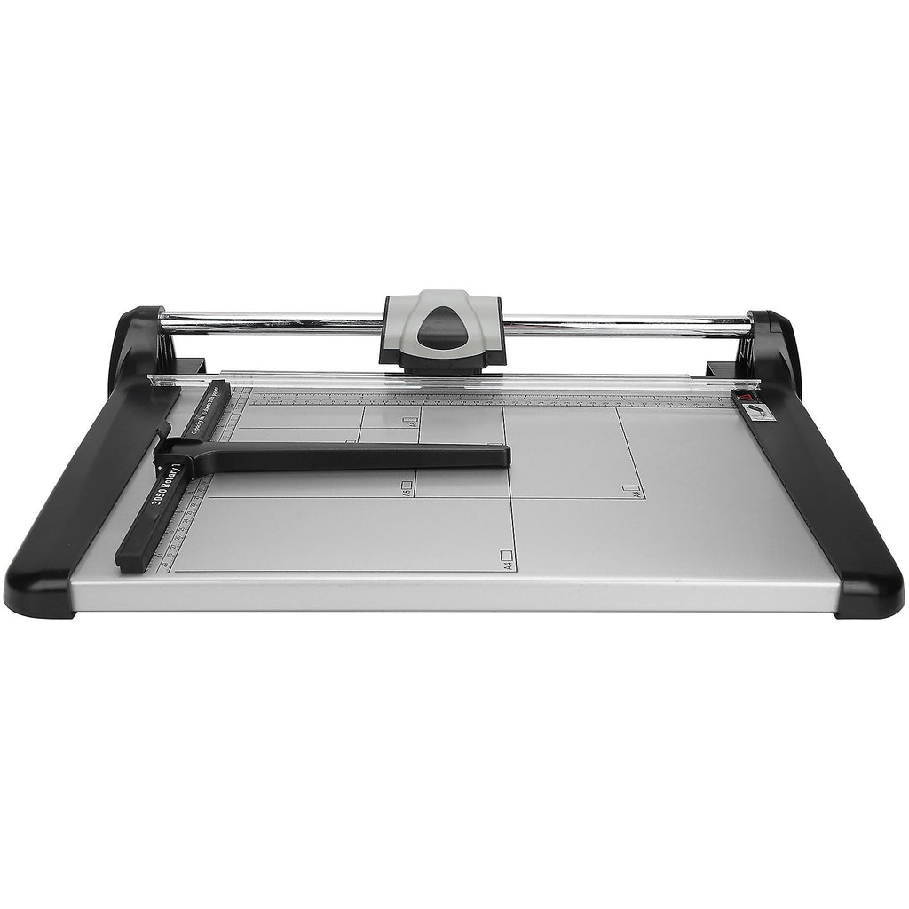 Features 1??Carbon steel rolling cutter to make the cutting more smoothly and easy to give you efficient and convenient cutting experience. Rolling cutter is sharper than the side cutter and the cutting edge is smoother from the mechanical point of view. 2??Sharpened steel blade can not only cut paper, but also cut various materials. It can cut 15 sheets of A4 paper at a time. Sleeve type sliding tool head assembly, simple and convenient for cutter head change. 3??Large diameter tool head guide rail effectively stabilizes the tool head without shaking, and the operation is more labor?saving and the cutting edge is smoother. 4??Warped plate?type press strip is easy to be placed and cooperate with the tool head assembly to easily complete the action of automatic down, effectively prevent the displacement of cutting objects. 5??Press strip adopts high toughness organic glass, the scale line of the baking paint on the panel and press strip marked 1.5cm / 0.6in, the scale is clear and identifiable, and the positioning scale makes the cutting positioning more convenient. Specification Condition: Item Type: Paper Trimmer Material: Steel + glass + ABS Application Scenarios: Daily office work, graphic production shop cutting work, photo studio photo cutting work, mobile phone film shop cutting film task, school cutting card, DIY leather cutting Size: Approx. 55 x 34 x 9cm / 21.7 x 13.4 x 3.5in (manual measurement, for reference only) Material for Cutting: Paper, cardboard, card, photo, work card, mobile phone film, leather Number of Sheets Cut: 15 sheets of A4 paper at a time Effective Cutting Length: Approx. 360mm / 14.2in Steps to use: 1. Put paper, position alignment. 2. Push up, fixed press paper strip. 3. Slide the knife and begin to cut the paper. 4. Loosen the paper, take out the paper has been cut. 5. Unscrew the screw counterclockwise, you can take out the head. 6. Clean up the scraps of paper after use. Package List 1 x Paper Trimmer