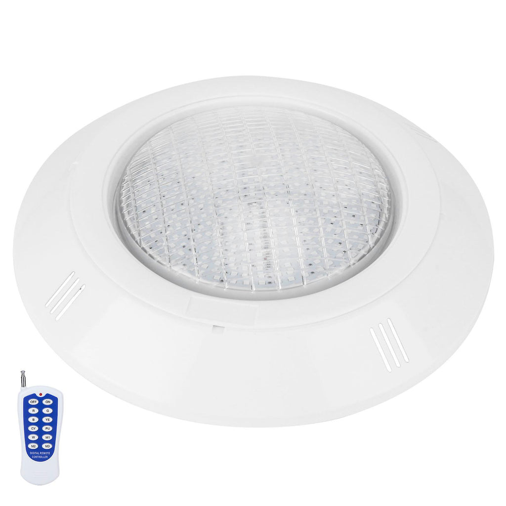Features 1??12?key remote control, you can control multiple pool lights at the same time. Choose any light color you like to make your pool more colorful. 2??AC12V safe working voltage, safe and reliable, rest assured to use.(12V transformer is required for installation, not included in the Package) 3??Suitable for underwater lighting, landscape lighting, garden lighting, public fountains, public or private swimming pools and other fields. 4??The lamp body is made of high?quality ABS material, which is moisture?resistant and corrosion?resistant, IP68 waterproof, not afraid of water leakage. 5??Easy to install, equipped with standard swimming pool light accessories and instructions, easy to operate, easy to replace. Specifications Item Type: Underwater Light Material: PC+ABS Color: As shown in the picture Size: Approx.29.3x6.5cm/11.5x2.6in(D x H) Cable Length: Approx.180cm/70.9in Weight: Approx.1365g/48.1oz Application: Outdoor lighting pool lights Remote Control Battery: 1 x 23A alkaline battery, 50MAH (Included) Power: 36W Light Color: RGB Static Color: 7 kinds Dynamic Effects: 3 kinds Remote Control: 12 keys Number of Lamp Beads: 360LED Luminous Flux: 3000LM Beam Angle: 120 degrees of flood light LED Life: 50000h Waterproof Rating: IP68 Package List 1 x Underwater Light 1 x White Circular Ring 1 x Light Fixed Bracket 1 x Remote Control 1 x Remote Control Battery 1 x Remote Control Instruction Manual 1 x Remote Control Lid 1 x Light Instruction Manual 4 x Long Screw 4 x Short Screw 4 x Expansion Screw 1 x Thread Guide 1 x Wire Screw 1 x Waterproof Wire Rubber Ring