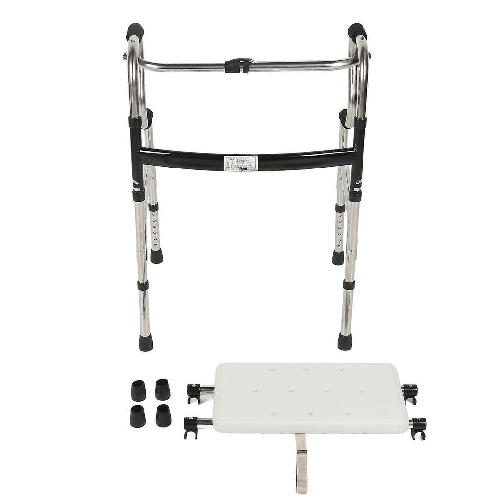 Features 1??Versatile Mode Switching: By positioning the mode switching ball up, you can enjoy stable fixed walking, while positioning it down allows for easier swapping of walking styles. 2??Height Can Be Adjusted: Featuring 6 levels of adjustable height, stainless steel walker can effortlessly be personalized to suit the preferences and requirements of individuals of varying heights. 3??Ergonomic Handle Design: Crafted with soft foam grips that feature anti slip textures, walker provides a comfortable and secure hold for elderly users. The thoughtful design ensures a pleasant and stable grip, enhancing user confidence and reducing the risk of slips or accidents. 4??Versatile And Practical: Walker aids elderly and disabled individuals by providing support for standing, walking, and even back stretching exercises. Its adaptability caters to a range of needs, promoting independence and improving overall mobility. 5??Stainless Steel: Elderly walking aid is constructed with thickened stainless steel tubes, which strikes the perfect balance between lightweight design and exceptional durability. Specification Item Type: Adults Walker Material: Stainless steel tube, foam handle, rubber footrest Double Bend Walker: Original Without Wheels Height: Approx.75-85cm / 29.5-33.5in Base Length Width: Approx. 52 x 45cm / 20.5 x 17.7in Bath Board Support Length: Approx. 51.5cm / 20.3in Seat Plate: Approx. 41 x 22cm / 16.1 x 8.7in Applicable People: The elderly, the disabled Product Features: A key to fold, strong and stable, multi mode switching, strong load bearing capacity, 6 adjustable height, stainless steel material Bath Board Use: Can be installed in the elderly walker as a bath seat, suitable for 4 feet walker use. Package List 1 x Elderly Walking Aid 4 x Footrests 1 x Bath Panel
