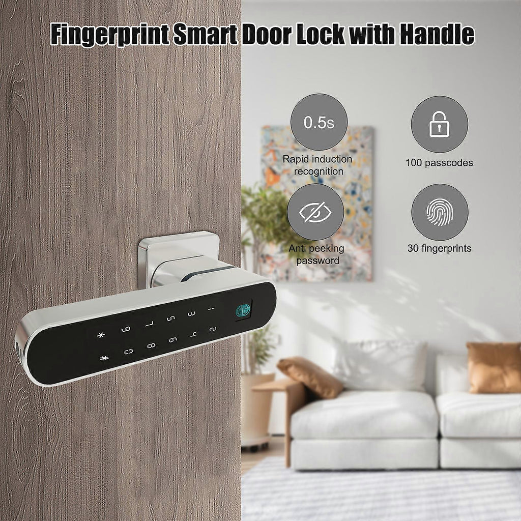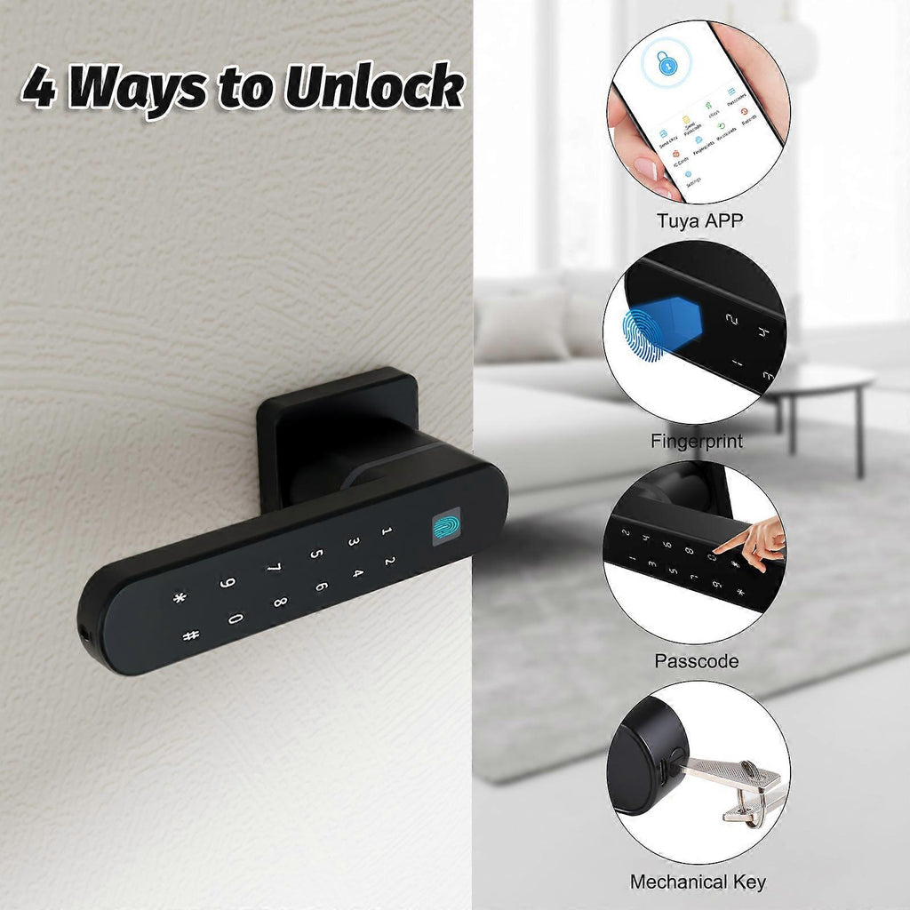 Fingerprint Smart Door Lock with Handle 4 in 1 Keyless Entry Tuya APP Key Passcodes Smart Electronic Door Handle Door Knob for Front Door Bedroom Apa