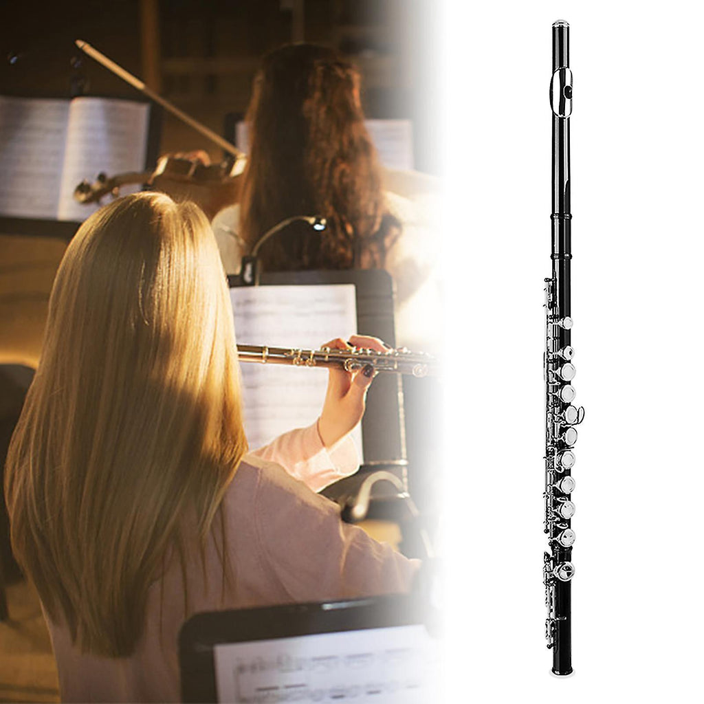 LADE C Key 16 Hole Brass Flute Beginner Kit Storage Case Cleaning Cloth Gloves (black)