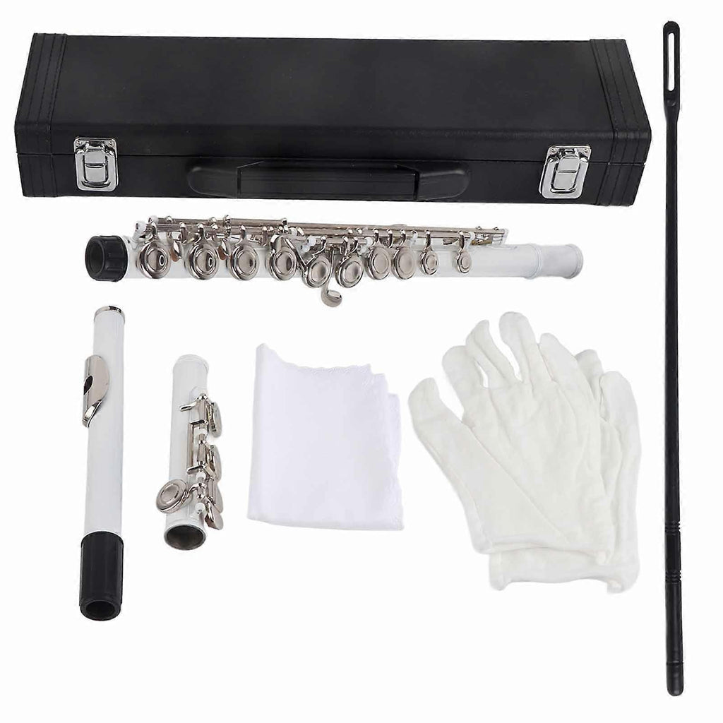 LADE C Key 16 Hole Brass Flute Beginner Kit Storage Case Cleaning Cloth Gloves (white)