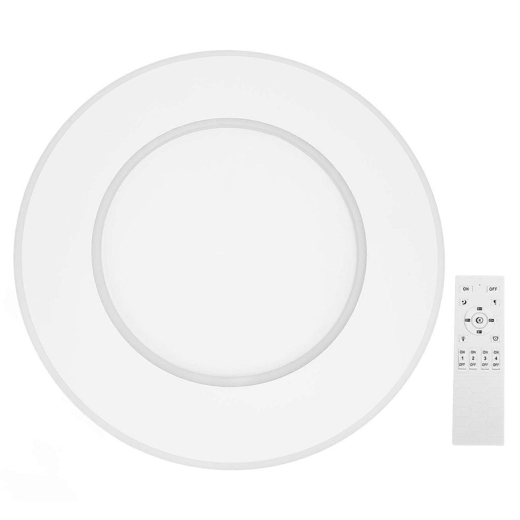 Features 1??DIMMABLE AND COLOR CHANGEABLE: The smart ceiling fixture can be dimming and has 3 light colors changeable options: white, warm, and neutral light. You can pick your color of light from 3000K-6000K using the remote control, and adjust the brightness(5% to 100 percent) to create a soft ambiance in your home 2??SIMPLE AND STYLISH: Remote ceiling lights select quality transparent acrylic cover, no fading, erosion resistant, no cracking, easy to wipe and take soft attractive fashionable ambiance to your home 3??ENERGY SAVING: LED flush mount ceiling light adopting quality LED chips, the appearance flush mount lighting saves energy up to 85%. Built in security driver, with stable driving performance, make light more long lasting and safe. Over 50,000 hour lifespan 4??CRI90+ RATING: This ceiling lights fixture has CRI 90+, which light to render more closely to the object true and original color, thus producing more accurate and vivid lighting than other lighting alternatives 5??APPLICABLE SCENARIO: Modern LED flush mount ceiling light is a nice choice for home, office, study room, hotel, garage, etc., very versatile Specifications Item Type: LED Flush Mount Ceiling Light Remote Control Power Supply: 2 x Batteries(not included) Light Source: White light, warm light, neutral light(adjustable) Control: Remote control and APP Material: Iron and acrylic Installation: Suspension hook installation Weight: 3220 g / 113.6 oz(approx.) Package List 1 x Lamp Body 1 x Remote Control 1 x Remote Control User Manual 1 x APP User Manual 1 x Suspension Hook User Manual