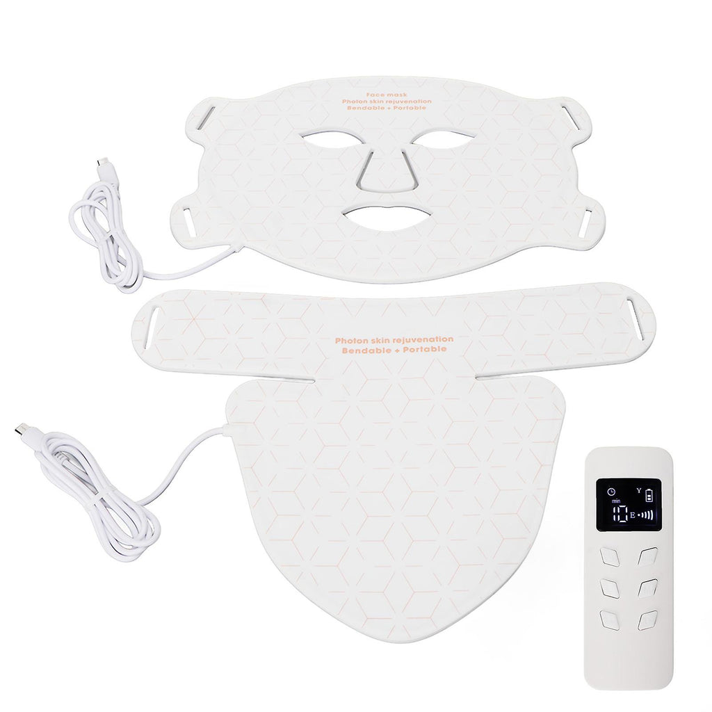 Features 1??For Oily Skin: With 4 LED colors lights to improve skin such as oil balance. Choose right light color and apply face device to reduce breakouts. Can also be used as a collagen cover to treat oily skin and dull skin. 2??480pcs Lamp Chips: Built in 480pcs evenly distributed LED lamp chips, effectively care for every corner of the skin, so as to achieve the purpose of skin improvement, improve the ability to absorb nutrients, reduce wrinkles, and help skin repair. 3??4 Light Waves: Contains 4 light waves of different colors and lengths. 630nm red LED light, 460nm blue LED light, 590nm yellow LED light, and 850nm near infrared light, meet different needs. 4??Eye Protection: LED light face device built in eye protection function that blocks eyes from bright light, allowing you to read, work or watch TV while wearing face device. 5??Soft And Comfortable: Made of food grade silicone, which is flexible and easy to clean, also face device is lightweight for easy to store and carry, wearing for long time will not feel heavy, and can be adjusted for any head size. Specification Item Type: LED Light Face Device Material: Silicone Color: White Number of Lamp Chips: Face Cover: 240pcs Neck Scarf: 240pcs Light Color: red LED light, blue LED light, yellow LED light, infrared light Light Wavelength: Red LED light: 630nm Blue LED light: 460nm Yellow LED light: 590nm Near Infrared Light: 850nm Light Wave Gear: 3 Timing Time: 10 to 30 minutes Battery Type: Lithium battery Battery Capacity: 3000mAh (Built in) Power Supply Mode: USB charging Package List 1 x Beauty Face Device 1 x Neck Scarf 1 x USB Cable 1 x Instruction Manual 1 x Remote Control 1 x Storage Bag 2 x Eye Cover 4 x Band