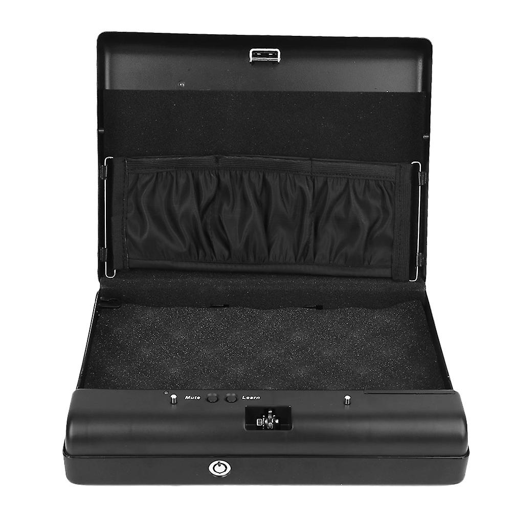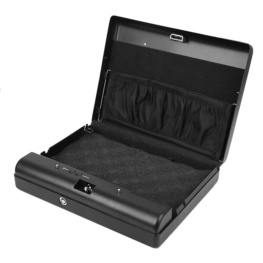 Features 1??The password refers to a combination of pressing a single key or pressing several keys at the same time. For example, a correct four-digit password can be 1.2.3.4 or 1.12.123.1234. 2??The device can be opened 180??, strong cold-rolled steel plate to ensure the hardness of the case to cope with the destruction of violence and the internal memory foam padding can protect the contents of the box from external damage. 3??Low voltage alarm, when the battery is low, it will ring three times every time the safe is opened, and the LED blinks three times, indicating the lack of voltage to remind the user to replace the battery. 4??Power protection, when the safe suddenly shuts down, the saved password will be saved and continue to use. 5??Ultra-low power consumption, 4 AA alkaline batteries (not included), service life up to 12 months, and this device supports the use of rechargeable batteries. 6??This device is compact and does not take up space. It can be placed in a suitcase for easy portability and can also be placed on a desk, drawer, bookshelf, or in a car. 7??Equipped with spare keys, each safe is equipped with two spare keys,The spare key is not controlled by the electronic door closing system, so you can use the spare key to open the device and replace the battery when there is no electricity. 8??Designed to keep weapons, jewelry and valuables safe and close. Specification Conditon: Item Type: Portable Security Box Material: Cold-Rolled Steel Plate Color: As Pictures Shown User Capacity: 1 set password of 4-6 digit Unlocking Method: Password/Spare key Password Type: Electronic key password Surface Treatment: Spraying plastic Power Supply Type: 4 AA alkaline batteries (not included) Working Voltage: 4.8-6.5V Size: Approx. 280 x 210 x 60mm/11 x 8.3 x 2.4in Package List 2 x Elastic Band 1 x Wrist Rope 1 x Fixed Wire Rope 1 x Instruction Manual (English) 2 x Spare Key 1 x Portable Security Box