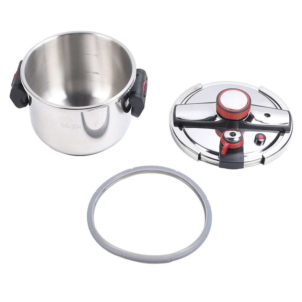Features 1??FAST COOKING: The pressure cooker can cook food under high pressure, increasing the boiling point of water and thus accelerating cooking speed. 2??INTELLIGENT PROTECTION: The high pressure cooker adopts safety valve and pressure limiting device, which can intelligently control internal pressure and ensure the safety of the cooking process. 3??304 STAINLESS STEEL: Made of 304 stainless steel, our pressure cooker is resistant to high temperature, corrosion and wear, which is convenient to clean and can ensure service life. 4??2 GEAR PRESSURE: 60kpa low pressure is suitable for vegetables, fish and rice, 100kpa high pressure is suitable for meat and food that is difficult to cook, which accelerates cooking time, saves energy, avoids explosions. 5??USER FRIENDLY: The pot has minimum and maximum limit markings for easy use. The handle can be folded for better storage. Can be used for both induction cooker and open flame, more practical. Specifications Item Type: Pressure Cooker Material: 304 stainless steel, engineering plastics Function: Universal for induction cookers, gas stove, open flames, electric furnace, ceramic stove, etc., double bottom dual purpose Gear I: Low working pressure position (60kpa), suitable for vegetables, fish, and rice Gear II: High working pressure position (100kpa), suitable for meat and difficult to cook foods Air Leakage Problem: If any abnormal problems occur, you must immediately turn off the ignition source, move the pressure cooker to a flat surface, use cold water to cool and depressurize, and find the cause and solve the problem through the following methods. 1. Steam runs out from the edge of the pot cover: The sealing ring is too dirty, clean the sealing ring; The sealing ring is aging, replace the sealing ring; 2. Inability to close: Deformation of the cover or problems with accessories, replace the cover or accessories; 3. Leakage of the safety valve: The exhaust pipe is not sealed, replace the exhaust pipe; There is a problem with the safety valve, replace it; 4. Steam leakage from the safety window: If the pressure is too high, the safety window function is activated, or the safety window loses function, cool the pressure cooker and clean all safety devices; 5. The sealing ring is broken, please replace it. Note: 1. Before use, carefully check whether the exhaust hole of the pressure limiting valve is unobstructed to prevent blockage of the exhaust hole. 2. Avoid excessive use: When using, the food and water in the pot should not exceed the maximum limit of the pot body; Food that is easy to expand, such as kelp and dried tofu, shall not exceed the minimum limit of the pot. 3. Thoroughly exhaust: When the pressure limiting valve starts to continuously exhaust, firepower should be reduced, which is both safe and energy saving. When closing the cover, it should be confirmed that it is in place to prevent the strength of the cover body from being reduced and causing danger due to inadequate fastening. 4. What is the function of the anti blocking cover? The exhaust pipe is a normal exhaust device for pressure cookers. The exhaust pipe has a narrow aperture and there is pressure inside the cooker, making it easy to be blocked during exhaust. The anti blocking cover is installed at the bottom of the exhaust pipe, serving as a filter and buffer, greatly reducing the possibility of the exhaust pipe being blocked. 5. Energy saving and heat regulating: When using a pressure cooker, it is important to pay attention to the heat, especially not to burn it slowly over high heat. After heating, as long as the exhaust pipe of the cooker emits a high volume hissing sound, the stove temperature can be reduced. Use a pressure limiting valve to maintain the hissing sound until the cooking is completed. 6. Clean exhaust: Timely eliminate and update pressure cookers that have been in use for more than 8 years; The sealing ring should be cleaned regularly, and if there are any abnormalities, it should be replaced in a timely manner. 7. Can the pressure cooker continue to use high fire cooking after the pressure limiting valve is vented? It is not advisable to continue cooking over high heat. After the pressure limiting valve of the pressure cooker stabilizes the exhaust, the ignition source should be turned down. This is because continuing to use a high fire can cause severe boiling in the pot, which can easily block the exhaust pipe and waste energy. After the pressure limiting valve is vented, switch to a low fire. Using a low fire to maintain intermittent exhaust of the pressure limiting valve can also maintain the pressure in the pot without decreasing and will not prolong cooking time due to low fire. 8. Why can not the pressure cooker be dried? Pressure cookers are different from other household cookware in that they have to withstand high working pressure and rely on the pressure strength of the lid and body to withstand these pressures. Some consumers are not aware of this