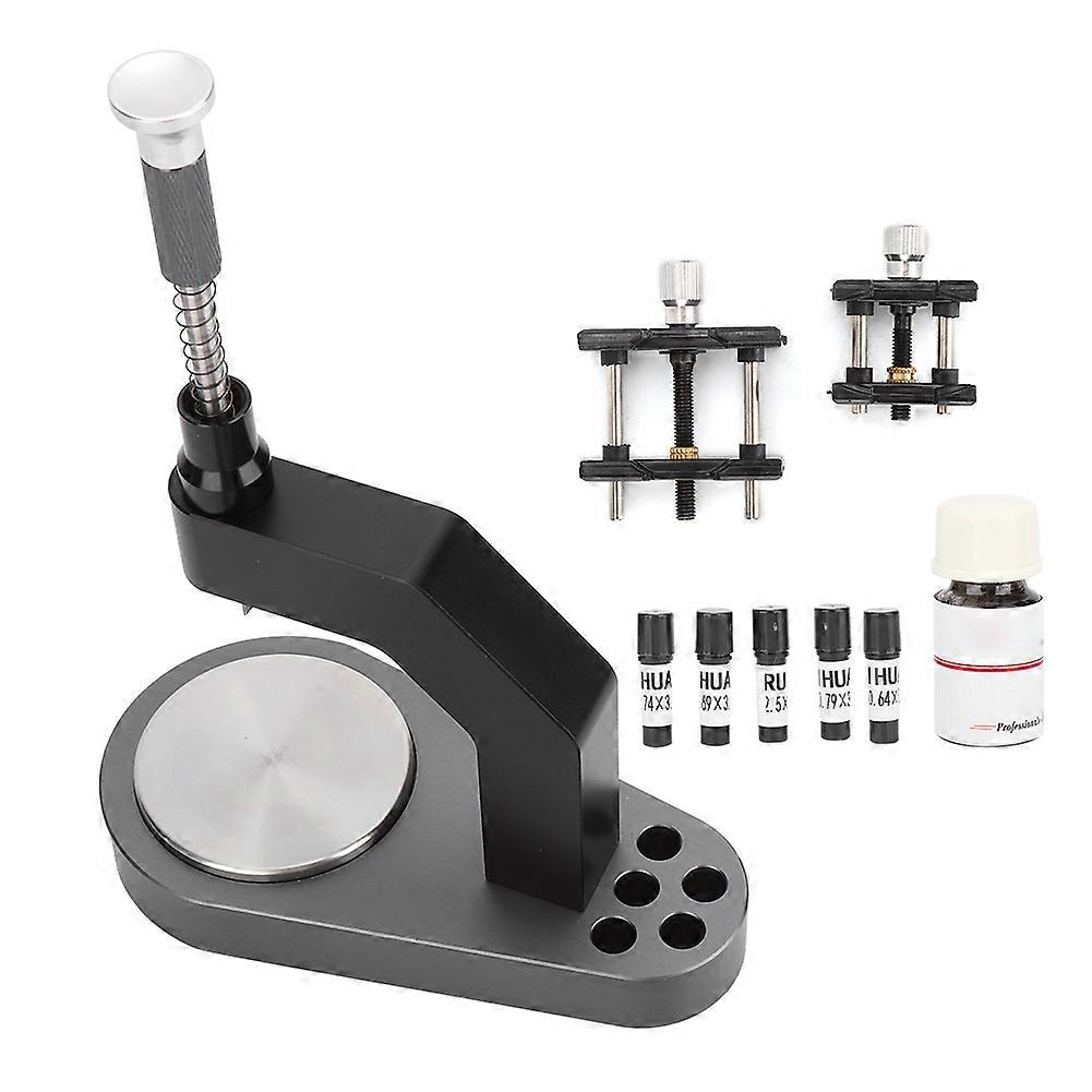 Features 1??Made of quality material, which is durable and for long time use. 2??Smooth and precision surface will not hurt the parts of your watch. 3??Easy and convenient to carry and use, having exquisite workmanship. 4??Professional repairing tools for watchmakers or repairers. 5??Come with different accessories, meeting your different need. Specification Condition: Item Type: Watch Repair Tool Material: Metal Height: Approx. 18cm / 7.1in Base Length: Approx. 12.9cm / 5.1in Package List 1 x Watch Dial Feet Welding Machine 5 Barrel of Nail 1 Bottle of Glue 2 x Movement Base