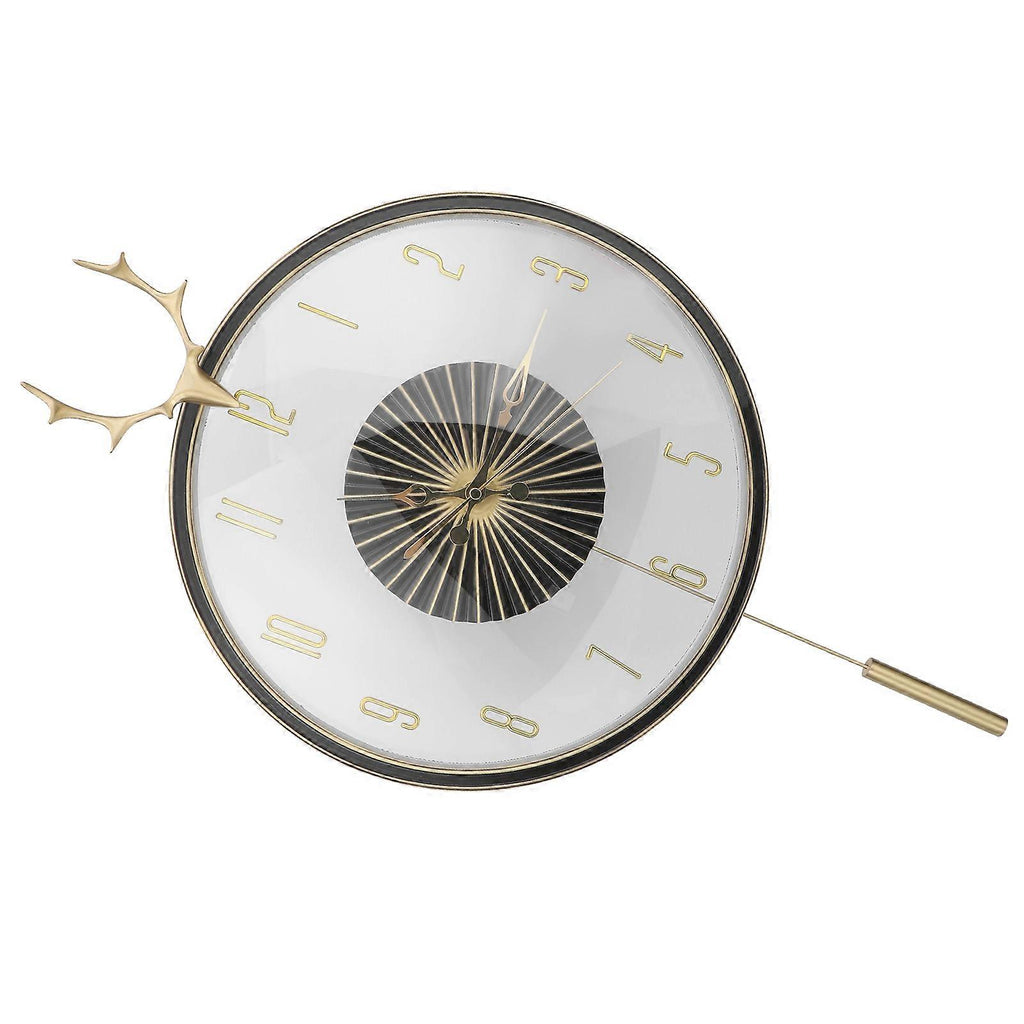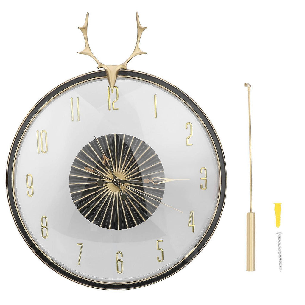 Round Wall Clock Hanging Brass Antlers Pendulum Clock Timepiece Decoration for Office Bedroom