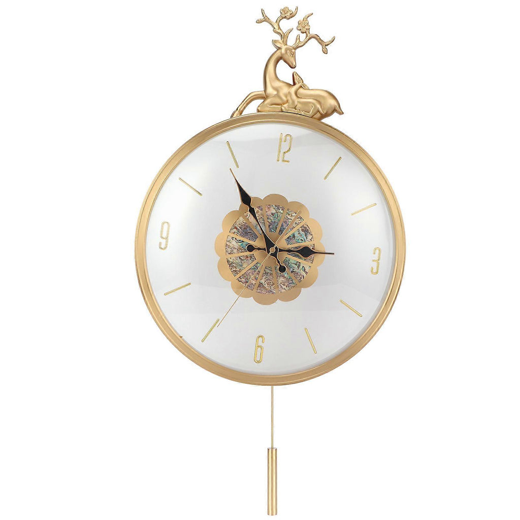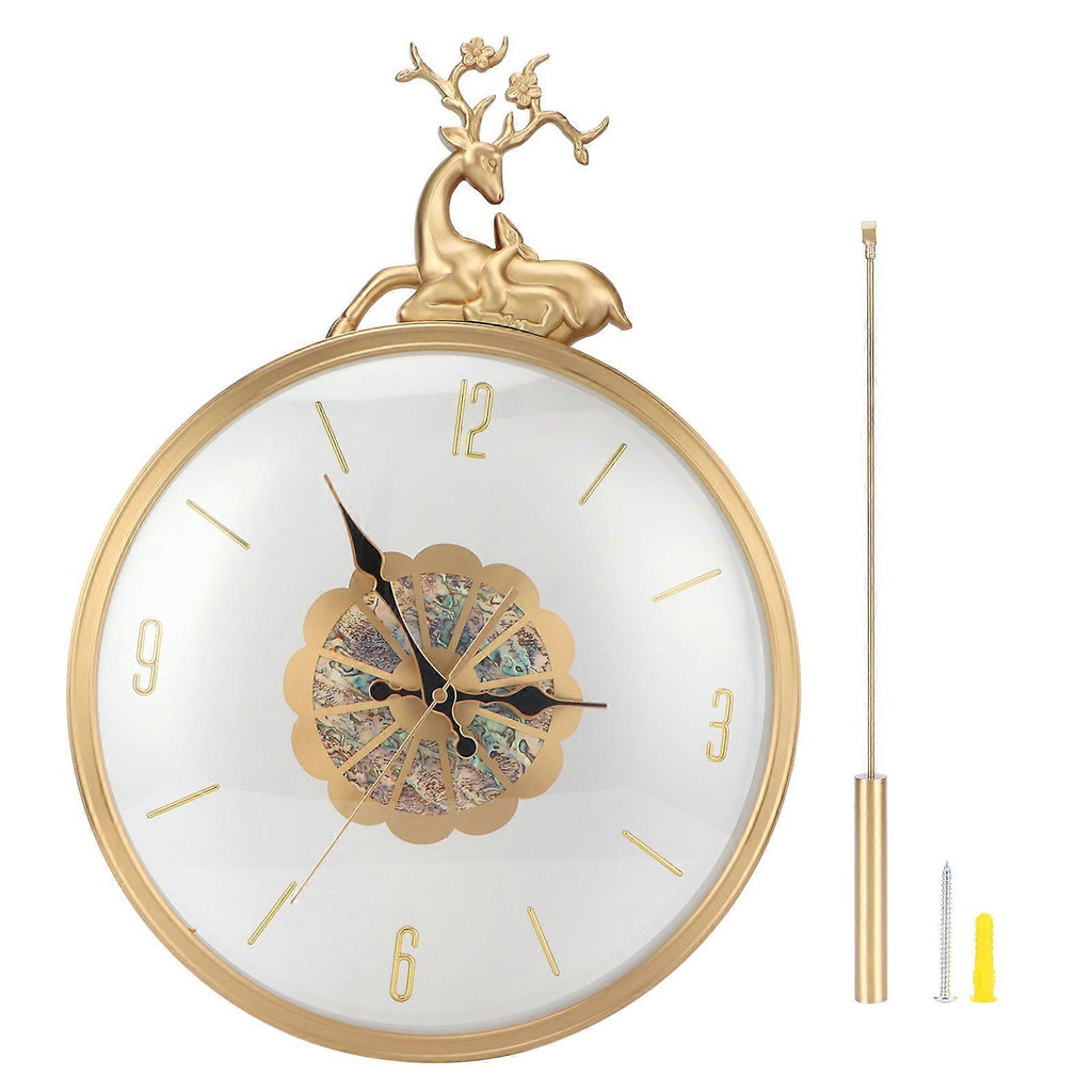 Features 1??Exquisite workmanship, light luxury art, fine lines on the surface of the all?copper shell are embellished, brushed and polished. 2??The high?quality movement is of excellent quality, which can ensure accurate time. Ultra?quiet movement,no ticking sound. 3??The wall clock is made of high?quality copper materials, has excellent texture, clear dial, strong hands, not easy to break, durable. 4??Deer represents wealth, auspiciousness and strength, and symbolizes the pursuit and yearning of the owner. It is a gift for any occasion. 5??Suitable for living room, bedroom, dining room, study room, office, corridor, cafe, bar, beautifully decorated. Specifications Item Type: Pendulum Clock Material: Copper Color: As shown in the picture Product Size: Approx. 50x35cm / 19.7x13.8in Weight: Approx. 3045g / 107.4oz Battery: 2 x AA battery(Not included) Main Technical Indicators: Complies with international GB/6046-92 Time Accuracy: -0.8~+1.2 seconds/day Working Temperature: -10??C~+50??C Application: Gifts, living room, bedroom bedside, study room, hotel, home furnishing store, etc. Product Use: Beautiful Chinese wall clocks and natural works, complete wall decoration pendants, high-quality smooth hand-frosted surfaces, gifts for any occasion. Battery Installation: Install in the battery slot according to the positive and negative instructions (please use carbon batteries, alkaline batteries will damage the movement). Time calibration Insert the battery according to the polarity requirements, and turn the pointer calibration wheel on the back cover of the movement to calibrate the hour and minute hands to the required time. Package List 1 x Clock(Battery Not Included) 1 x Pendulum 1 x English Manual 1 x Screw 1 x Expansion Screw