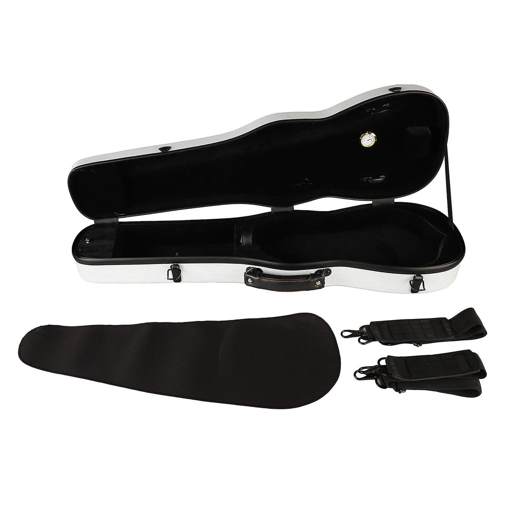 Violin Box Carbon Fiber Lightweight Portable Hard Violin Case Replacement with Hygrometer Straps White