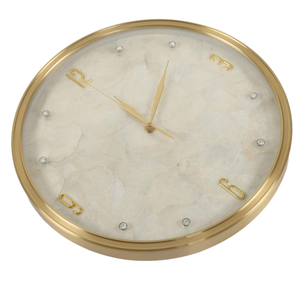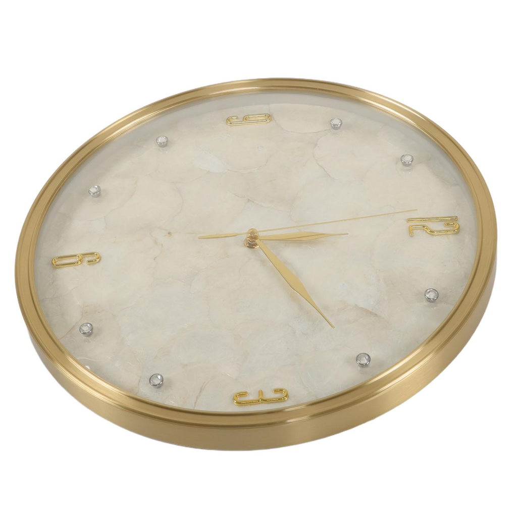 Features 1??Shell Dial: Wall clock has a natural shell dial, which reflects the design concept of fashion, bring your home with an attractive visual experience 2??Baking Paint Process: Round wall clock uses high temperature baking paint process, which ensures that it is not easy to rust, not easy to lose color 3??Copper Casing: Wall clock for living room uses copper casing, which not only has a durable performance, but also has a decorative effect 4??Silent Design: Silent wall clock has a silent design, no noise when running, will not disturb your study, office or sleep 5??Scope of Application: Decorative wall clock is suitable as a gift, but also suitable for placement in the living room, bedroom, study, hotel, home, etc Specifications Item Type: Wall Clock Case Material: Brass Mirror Material: Ordinary Glass Mirror Dial Material: Shell Style: JY 83030E Large Round Clock(??35CM) Appearance Shape: Round Applicable Places: Living Room Display Type: Hands Power Type: Battery Movement Type: Quartz Battery Parameters: 1.5V 1 x AA Batteries (shipped without batteries) Product Use: Gift, Living Room, Bedroom Bedside, Study, Hotel, Cafe, Home, Etc. Weight: Approx. 2350g/82.9oz Package List 1 x Wall Clock 1 x User Manual 1 x Screw 1 x Plastic Expansion Tube