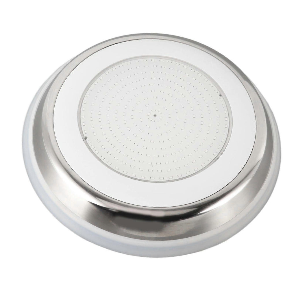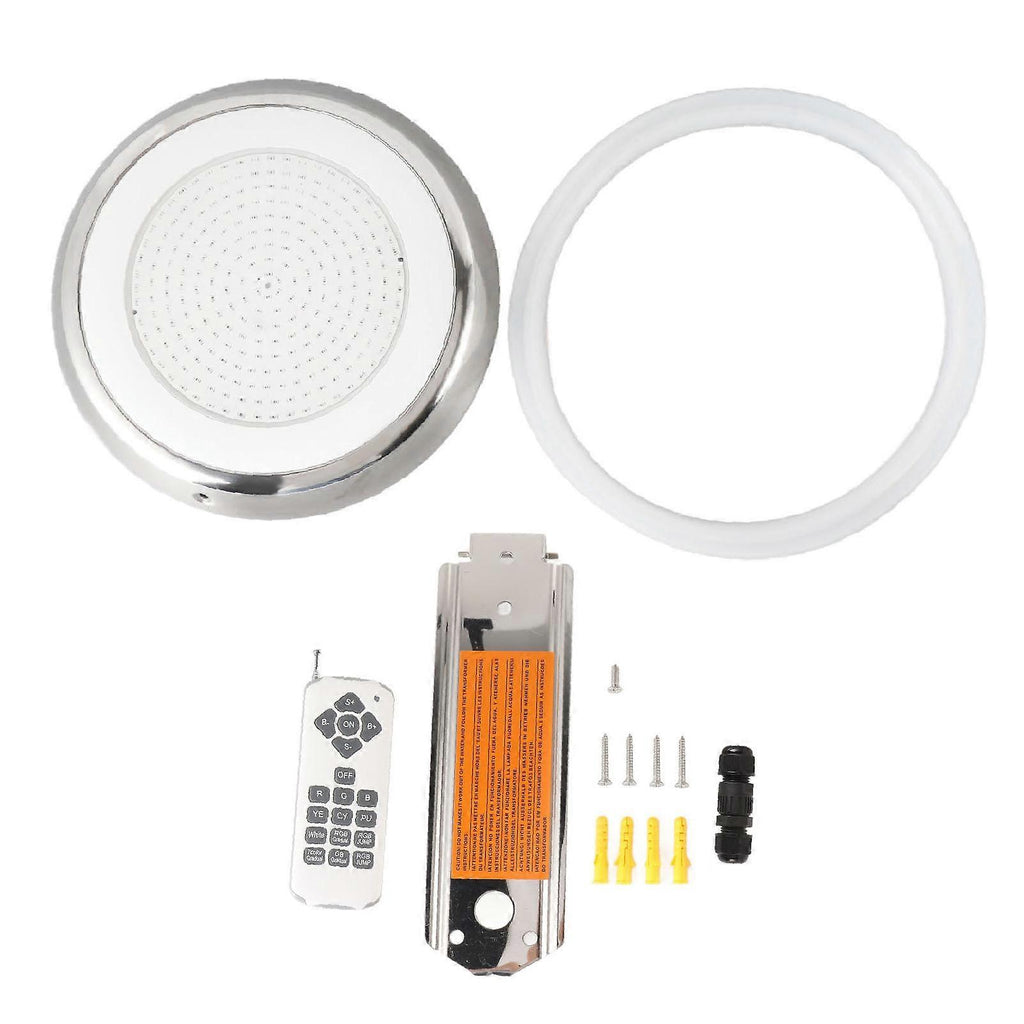 Features 1??Excellent Material: Stainless steel lamp body, PC high transparent lamp shade, erosion resistance, high temperature resistance, water seepage, IP68 protection grade. Widely used in swimming pools, fountains, waterfalls, salt water and sea water environment. 2??Wall Mounted: Equipped with 6.5ft power cord, easy to install. Low voltage AC 12V input, safe and reliable for underwater lights, requires a 12V AC transformer (not included). The lamp supports automatic color change or remote control, remote control distance of about 60ft. 3??Energy Saving: Power consumption of 18W, high brightness, wide lighting area, can light about a 15000 gallon swimming pool, which can save up to 80% power. 4??Memory Function: This RGB lamp remembers last used color or transition settings when it power off and then again through remote. If you turn off the power, it will go back to its default auto switch mode. 5??Remote Control: Including 7 single color fixing, 5 color light combination mode, to meet different lighting needs. Make your pool party even happier! Specifications Item Type: Wall Mount Pool Light Material: PC, stainless steel Weight: Approx. 1582g/55.8oz Diameter: Approx. 300mm/11.8in Cable Length: Approx. 2m/78.7in (size measured after silicone loop) Remote Control Power Supply Battery: 1 x 23A 12V battery (not included) Power: 18W Light Source: RGB Control: Remote control Protection Level: IP68 Package List 1 x Wall Mount Pool Light 1 x Rubber Loop 1 x Connector 1 x Specification 1 x Remote Control Specification 1 x Remote Control 1 x Mounting Plate 4 x Expansion Tube 4 x Pointed Screw 1 x Flat Head Screw