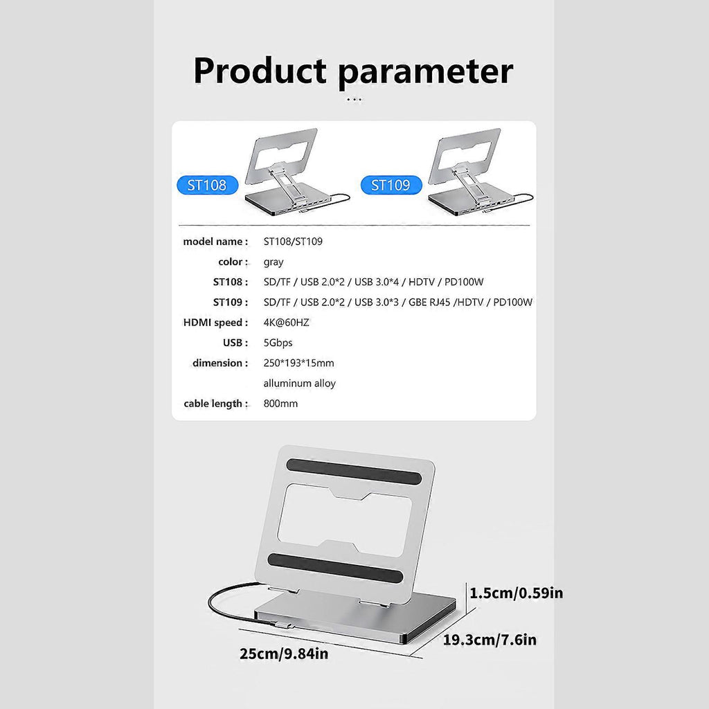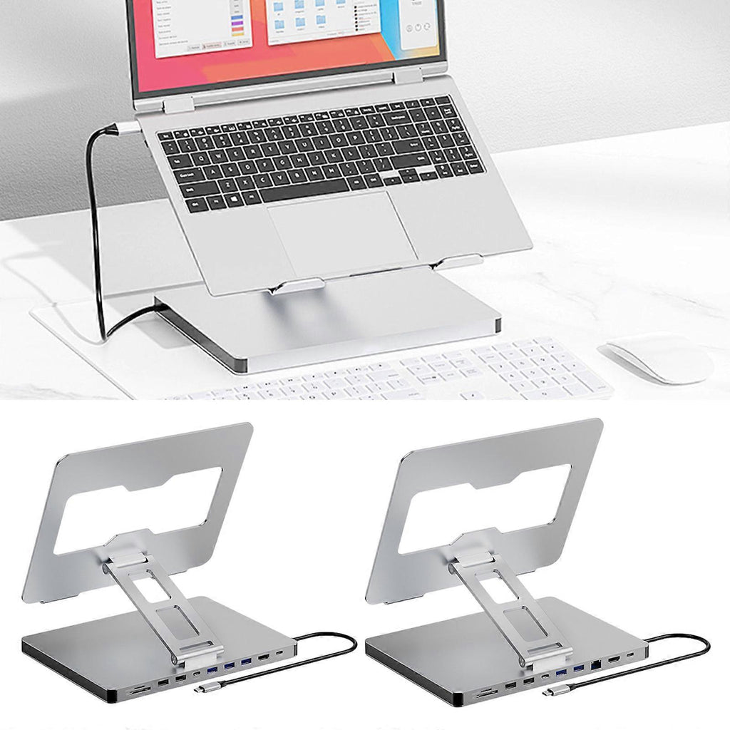 (With network port) Laptop Stand Hub Featuring 10 Port 3USB3.0 PD100W 4K60hz Output Notebook Holder for Business Traveler