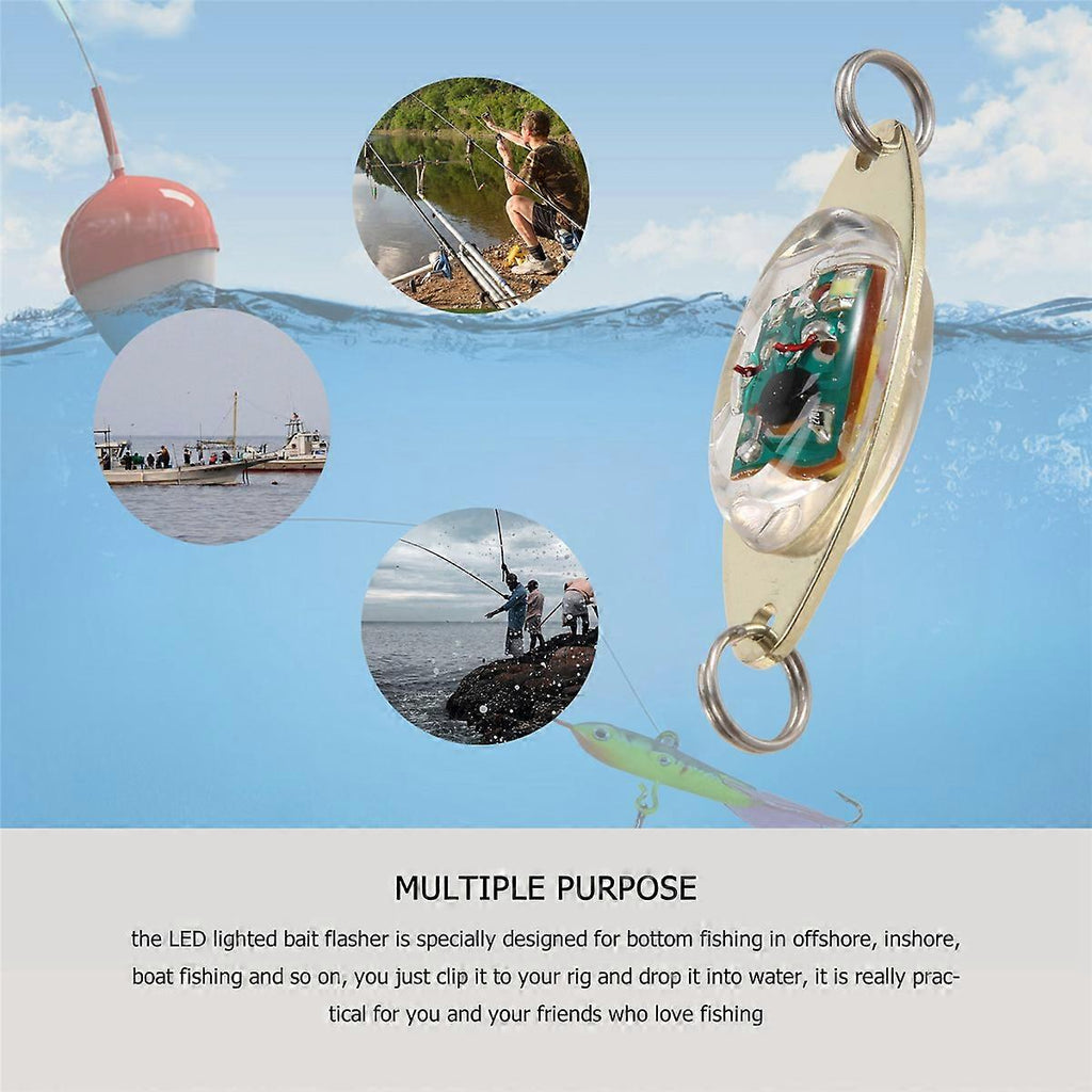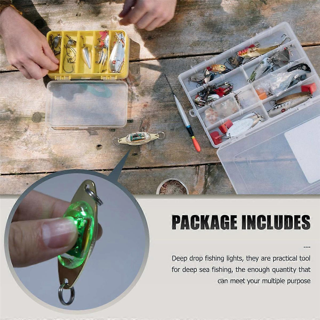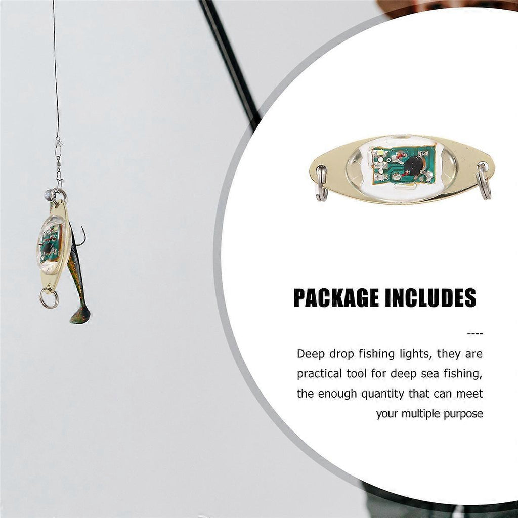 Package includes: Deep drop fishing lights, they are practical tool for fishing, the enough quantity that can meet your multiple purpose Flashing automatically: the LED light turn on automatically when it contact water, and turn off when its dry, don' require batteries, which is energy saving and easy to use Quality material: the shell of the LED fishing lures are made of hard material, besides, all parts are sealed tightly and the led light is high pressure , you can use under which makes it a for both saltwater and freshwater fishing Multiple purpose: the LED lighted bait flasher is specially designed for bottom fishing in offshore, inshore, boat fishing and so on, you just clip it to your rig and drop it into water, it is really practical and your friends who love fishing time: the LED fishing lures can be applied more than 400 hours of life span, much than a and a traditional fishing light; You can use even under 1000 yards water depth, highly visible and flashing light drive the hungry fishes crazy under water, luring them to attack Color:Golden Material:Metal + plastic Package Contents: 10 x LED lighted bait flashers Only the above package content, other products are not included. Note: Light and different displays may cause the color of the item in the picture a little different from the real thing. The measurement allowed error is +/- 1-3cm.