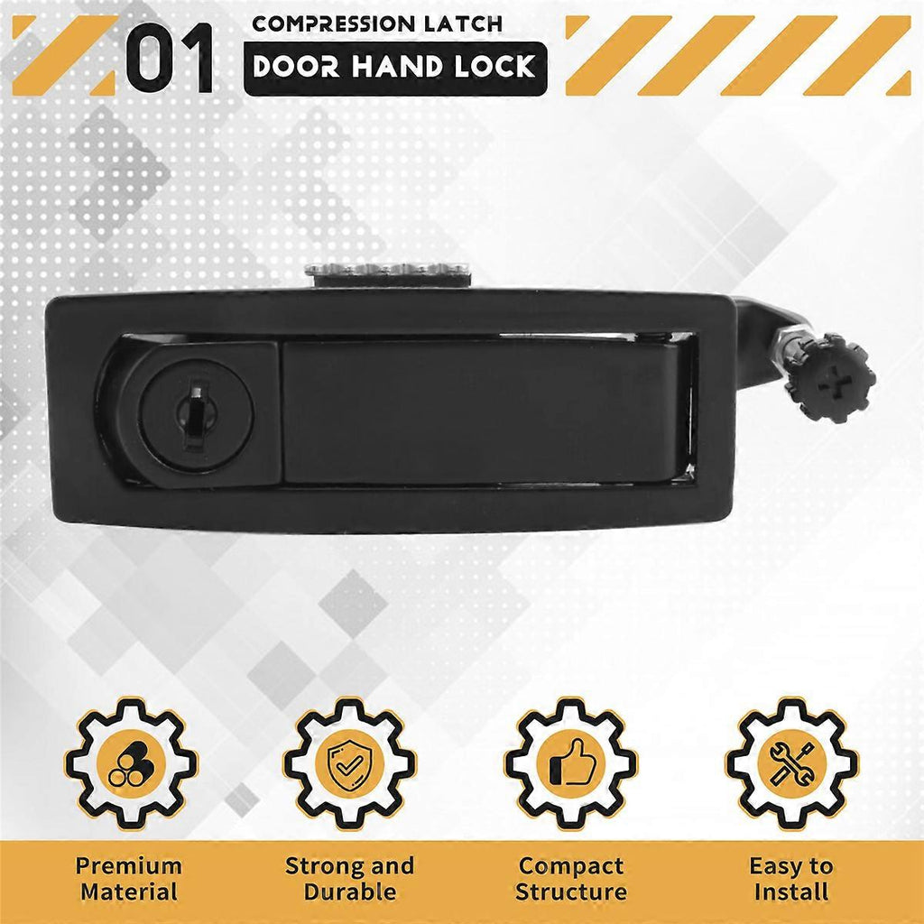 [High quality material]: The compression latches is made of metal material, which is strong and and not easy to rust. [Application scenarios]: compression latches are widely used in electrical enclosures and compartments of ships and yachts, they can also be used in other places such as industrial machinery buildings. [Application Size]: Suitable for 0.04-0.20 inch door thickness [Secure Design]: The latches are designed for security and include 1 locks and 2 keys per product, which is very thoughtful. [Easy to install and operate]: These popular low-profile lever latches present a sleek look for highly visible installations. color: Black Material: metal Package Contents: 10 x locks 20 x keys Only the above package content, other products are not included. Note: Light reflection and different displays may cause the color of the item in the picture a little different from the real thing. The measurement allowed error is +/- 1-3cm.