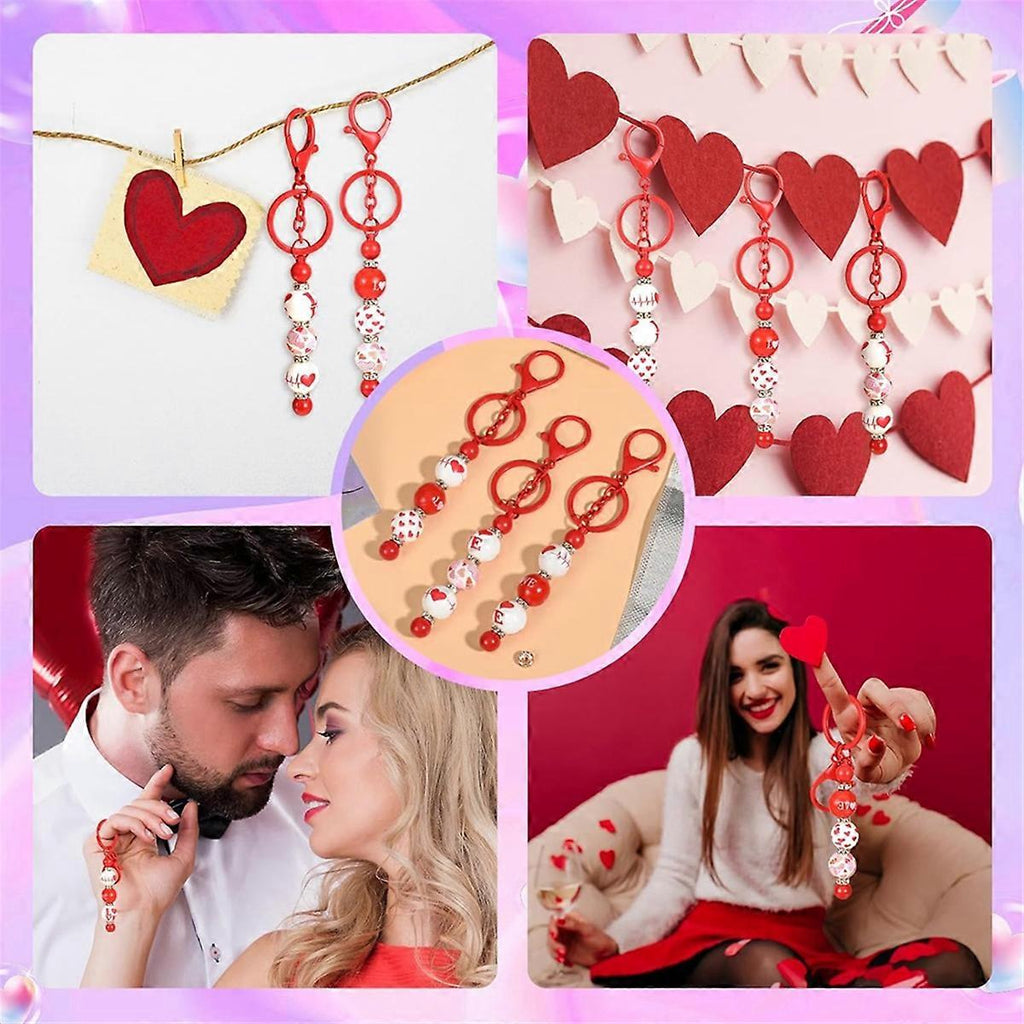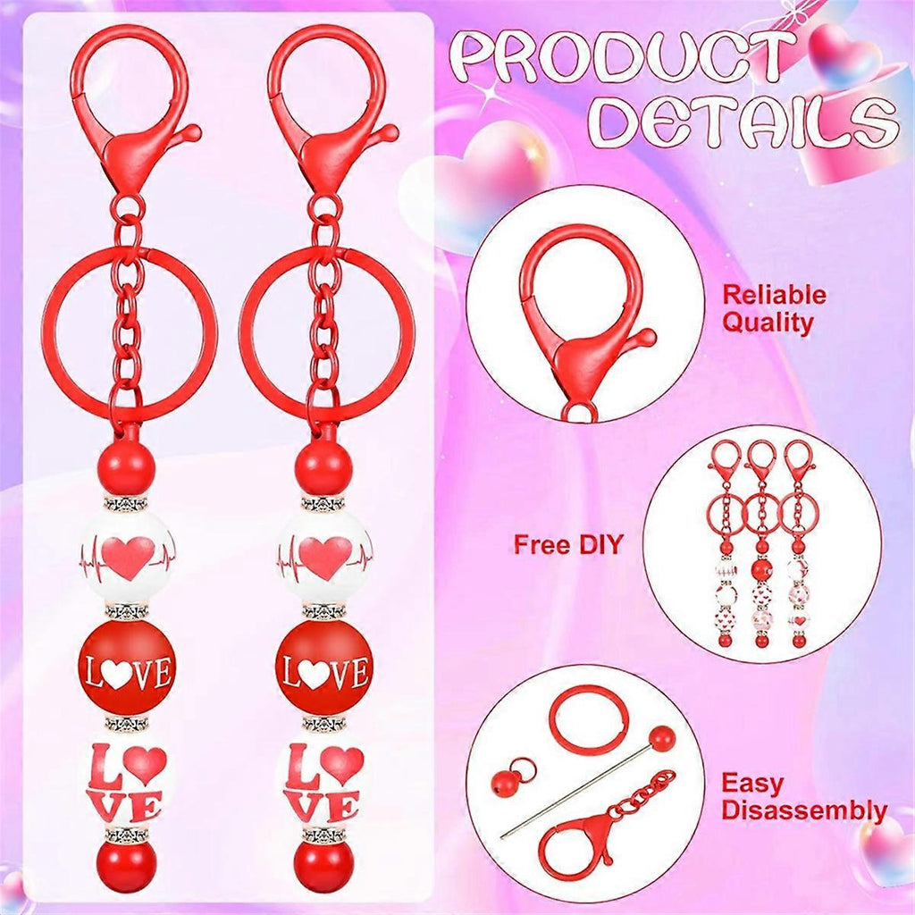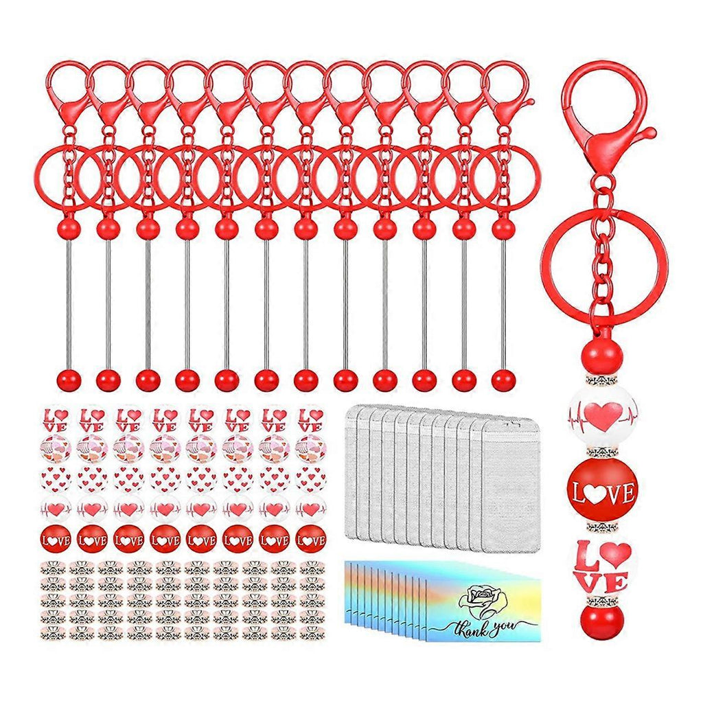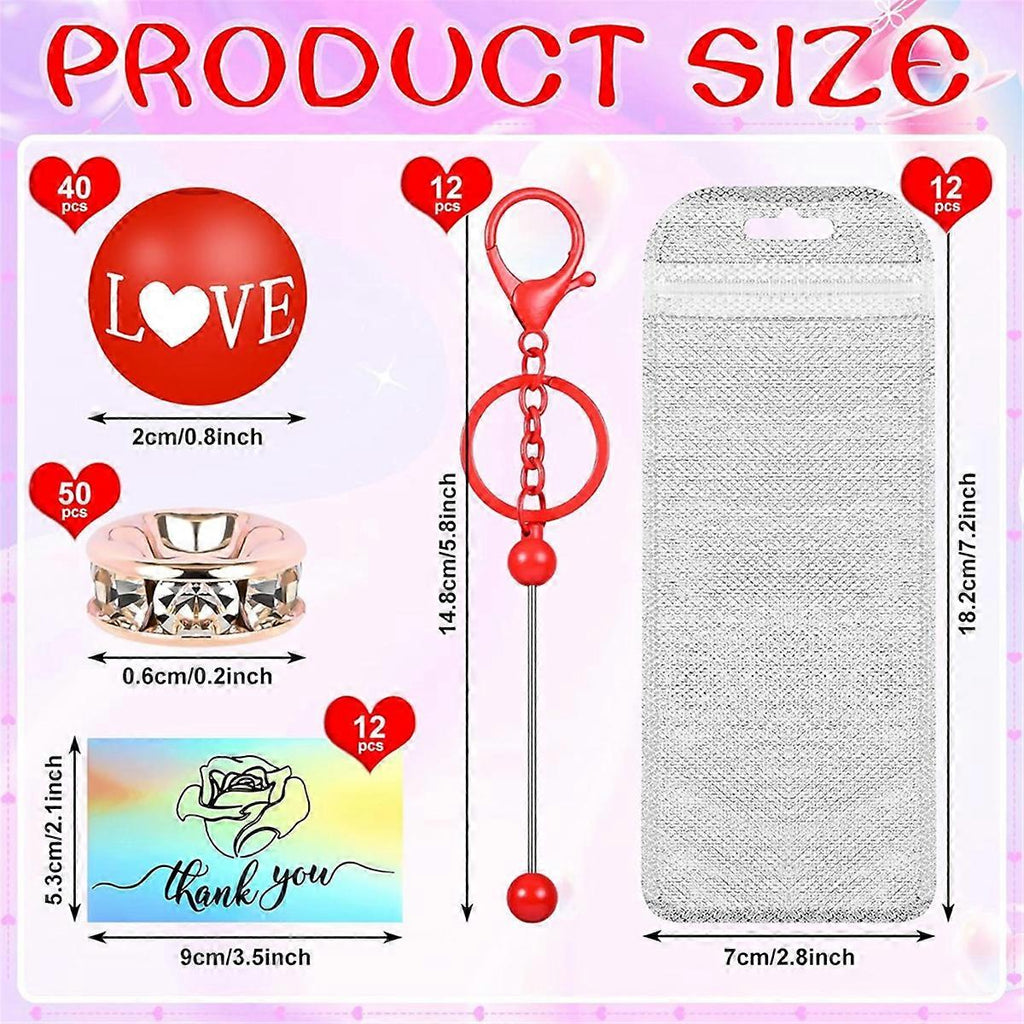 Package Included: The theme combines hearts and red tones, plus the letters "LOVE" to create a romantic Valentine's Day atmosphere. [HIGH QUALITY]The beaded key chain rod is made of high-quality metal and feels sturdy and . The red metal beads on both ends are firmly fixed by a rotating mechanism, ensuring a strong and reliable connection. The keychain's stem is very strong and resists bending even with gentle use, ensuring long-lasting use. Wide range of uses: You can use this DIY key chain set to make handmade key chains as thoughtful gifts for your loved on Valentine's Day to express your sincere feelings. Due to its high quality, you can also choose to sell products you make without worrying about a negative impact on quality. Humanized: Making beautiful Valentine's Day keychains is a breeze. Simply twist the metal beads on each end of the keychain, add the provided Valentine's Day beads or your favorite beads, and twist the metal beads to seal the keychain. It's a simple and convenient process, perfect for DIY enthusiasts. Material: Metal colour: red Package Contents: 12 x beadable keychain stems 40 x Valentine's Day Beads 50 x crystal beads 12 x resealable bags 12 x "Thank You" Cards Only the above package content, other products are not included. Note: Light reflection and different displays may cause the color of the item in the picture a little different from the real thing. The measurement allowed error is +/- 1-3cm.