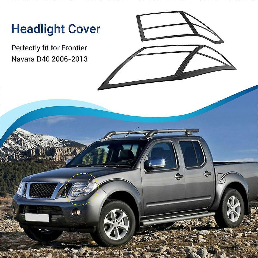 Made of High-Quality material. Fine , tough and abrasion- Very Easy To Install, No Cutting Or Drilling Required, and You Can Remove it At Any Time Prevent scratches and dust on the car , keep it clean and novel, add a new design sense Easy installed(DIY adhesive tape Paste ) Perfectly fit for Navara D40 2006-2013 Fitting 1. Remove all dust and grease from the application area. 2. Use Cleaner and Wax Remover or other mild solvent, such as applied with a clean cloth. 3. Indirectly heat the trim cover and car bodywork using a hairdryer to 30 Celsius, in order to achieve an improved instant bond. 4. Remove outer covering from tape to expose sticky side. 5. Apply molding (with tape applied) to the desired area of the car body. 6. down hardly after applying. 7. At least 12 hours before testing bond. ITEM: head light cover Item Type: Chromium Styling colour:Black Material:ABS Package Contents: 2 x Hood Lamp Cover Only the above package content, other products are not included. Note: Light and different displays may cause the color of the item in the picture a little different from the real thing. The measurement allowed error is +/- 1-3cm.