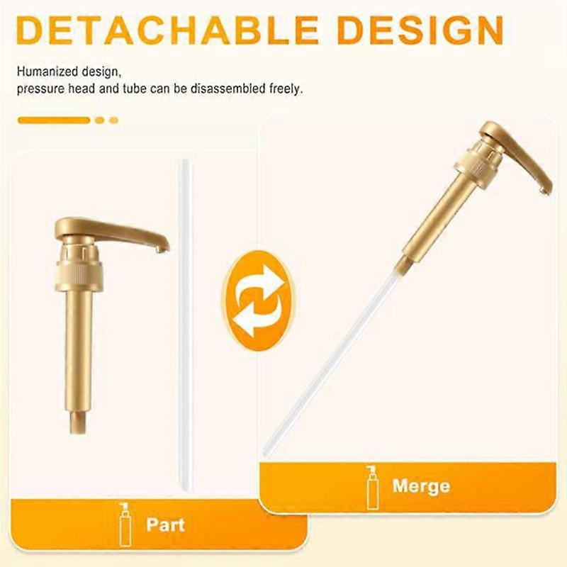 [Package Includes] You get 10Pcs pumps for coffee syrup dispensers, sufficient in quantity to meet your usage and replacement needs. Adjustable bottle pump pumps syrup out of the bottom of the bottle, thereby minimizing waste. It is a good helper in the home kitchen. [Design Size] The total length of the syrup pump is about 37cm centimeters. It is suitable for most 750 milliliter pump bottles, and the transparent tube of the half gallon distribution pump can be trimmed to easy to install in bottles. [Easy to Use] You just need to them gently syrup pump, they out and can control the syrup volume .After use, you can lock it to avoid the internal liquid overflowing. [High Quality Material] These pumps for coffee syrup bottle are made of high quality plastic material,non- and tasteless.They are strong, airtight and moisture-proof, so you can use them safely. [Versatile Applications] The syrup bottle pump is not only suitable for honey water, chocolate, coconut, blueberry, mocha, caramel and other syrups, but also suitable for 750ml bottled body wash, shampoo, which provides convenience for your . Colour:Gold Material:PP Size:Total length about 37cm Package Contents: 10 * syrup pump Only the above package content, other products are not included. Note: Light reflection and different displays may cause the color of the item in the picture a little different from the real thing. The measurement allowed error is +/- 1-3cm.