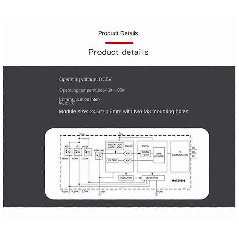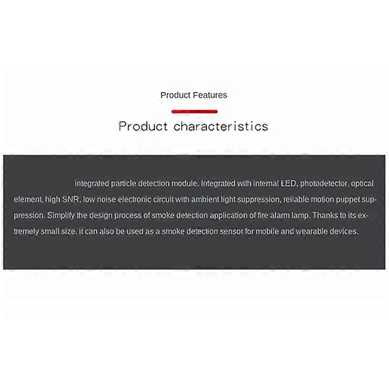 1. MAX30105 is an integrated particle detection module that integrates internal LED photodetectors and optical components, with 2. and high SNR, low-noise electronic circuits with ambient light control, and reliable motion artifact suppression. Simplify the design process for fire alarm smoke detection applications. 3. Thanks to the extremely small size, it can also be used as a smoke detection sensor for mobile and wearable devices. Working voltage: DC5V Working temperature: 40??C 85??C Communication interface: IIC With two M3 mounting holes Colour: Material:plastic Size: 10 x 10 x 5cm Module size: 24.6X14.5mm Package Contents: 1 x sensor Only the above package content, other products are not included. Note: Light reflection and different displays may cause the color of the item in the picture a little different from the real thing. The measurement allowed error is +/- 1-3cm.