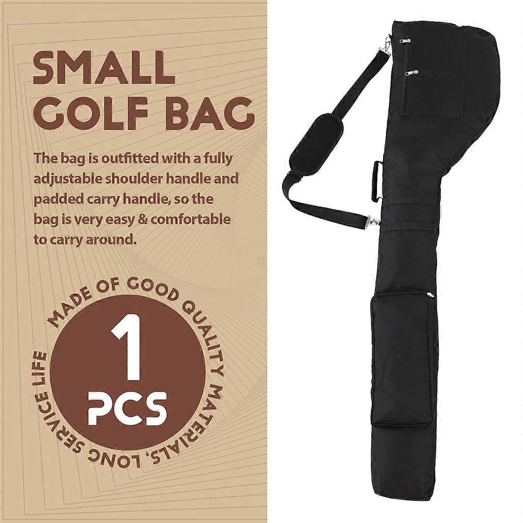 Light weight,foldable.The material is . The shoulder strap with shoulder Pad,avoid metal buckle digging into shoulder . The bag is outfitted with a fully adjustable shoulder handle and padded carry handle, so the bag is very easy & comfortable to carry around. It can hold 5-8 clubs,it is decided by the type of your club. It can be folded for storage.Accessory zipper pocket available. Weight:460g Colour:black Material:600D Oxford cloth Package Contents: 1 x golf bag Only the above package content, other products are not included. Note: Light reflection and different displays may cause the color of the item in the picture a little different from the real thing. The measurement allowed error is +/- 1-3cm.