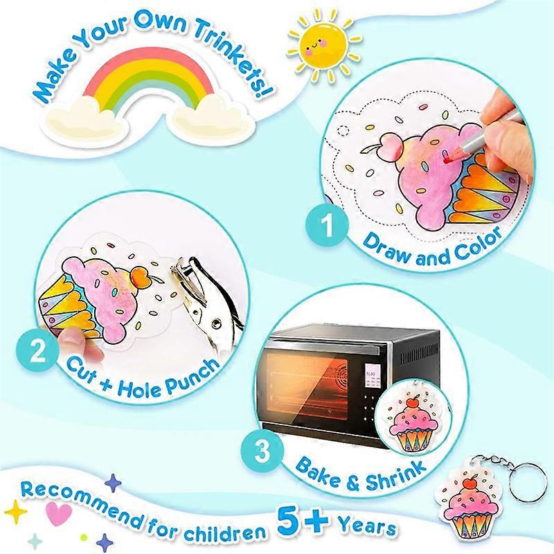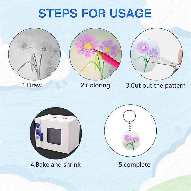 transparent and Sturdy Material: Shrink Film Paper made of quality Polystyrene material, transparent and smooth, enough strong after heat shrinking, great craft accessories for kids. Simple to Use: Just draw and color your favorite art, cut it out with scissors and it shrink in your oven This kit can not only make keychains, but also to make other jewelry and decorations, as long as you use your imagination. Making your own embellishments with these funny shrinky plastic films and sharing something interesting from childhood with your kids, making a wonderful surprise Easy To Create: This jewelry kit is easy to use, perfect for all ages. Colour:Photo Color Material:Paper Size:29 x 20cm Package Contents: 30 x clear Shrink Film Papers 20 x cord(10 color) 40 x keychain Only the above package content, other products are not included. Note: Light reflection and different displays may cause the color of the item in the picture a little different from the real thing. The measurement allowed error is +/- 1-3cm.