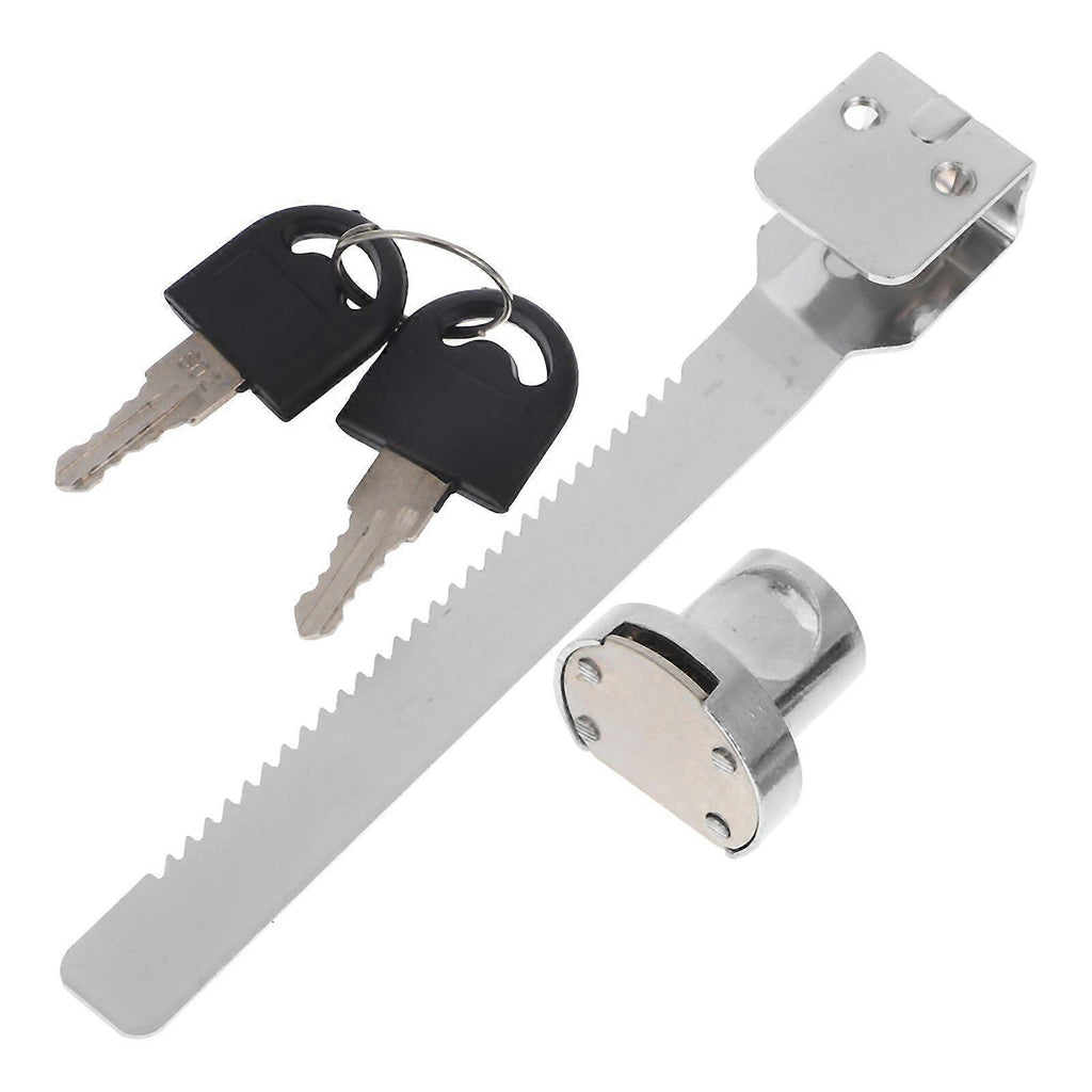 Description The lock for ice cream freezers is designed to provide robust security for horizontal glass sliding doors. Ideal for retail environments, this lock ensures that your valuable goods remain safe from unauthorized access. Easy to install, it fits seamlessly onto the sliding glass doors of your freezer. Features -Color:Silver -Material:Stainless steel -Size:14.00X2.30X1.70cm/5.50X0.90X0.67in - Sturdy: the sliding glass door ratchet lock is built to last, ensuring long term reliability and durability for your display cases -Easy installation: this lock designed for simple installation,suitable for various glass display cabinets -Enhanced security: equipped with a key, this lock provides security, ensuring that only authorized personnel can access the contents of the display case -Elegant: the sleek and refined lock not only serves its purpose but also enhances the aesthetic appeal of your display cabinet -Versatile application: ideal for use in stores, exhibitions, museums, and other settings, this lock meets diverse needs and ensures the safety of your displayed itemsPackage list: 1 x Glass Door Ratchet Lock 2 x Keys