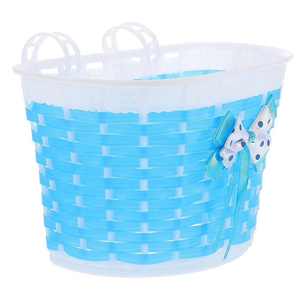Children Bicycle Basket With Ribbon Bow Plastic Front Handlebar Basket Carrier Bike Tricycle Scooter Storage Basket For Adult Kids Cycling